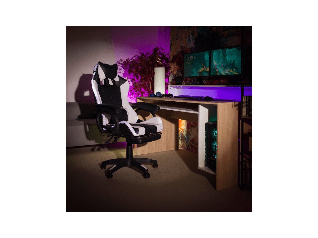 Kancelářské/herní křeslo s RGB LED podsvícením, černá/bílá, JOVELA