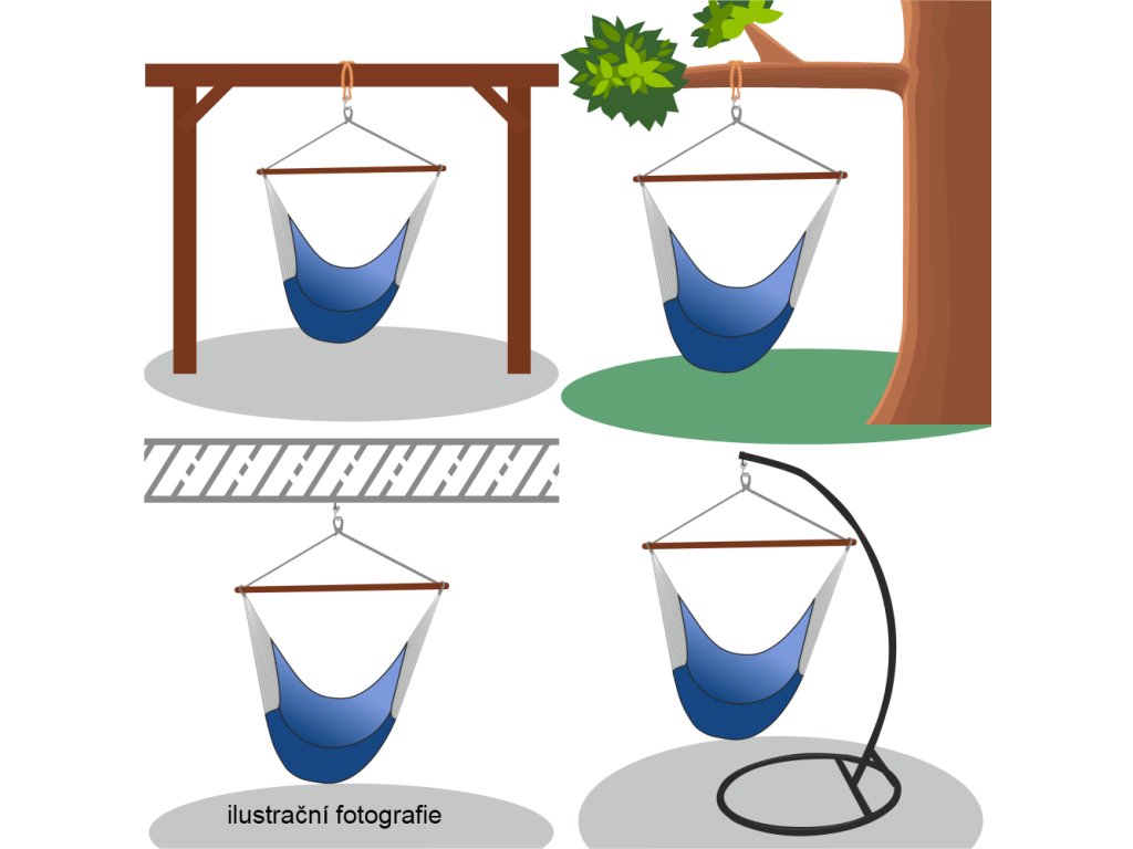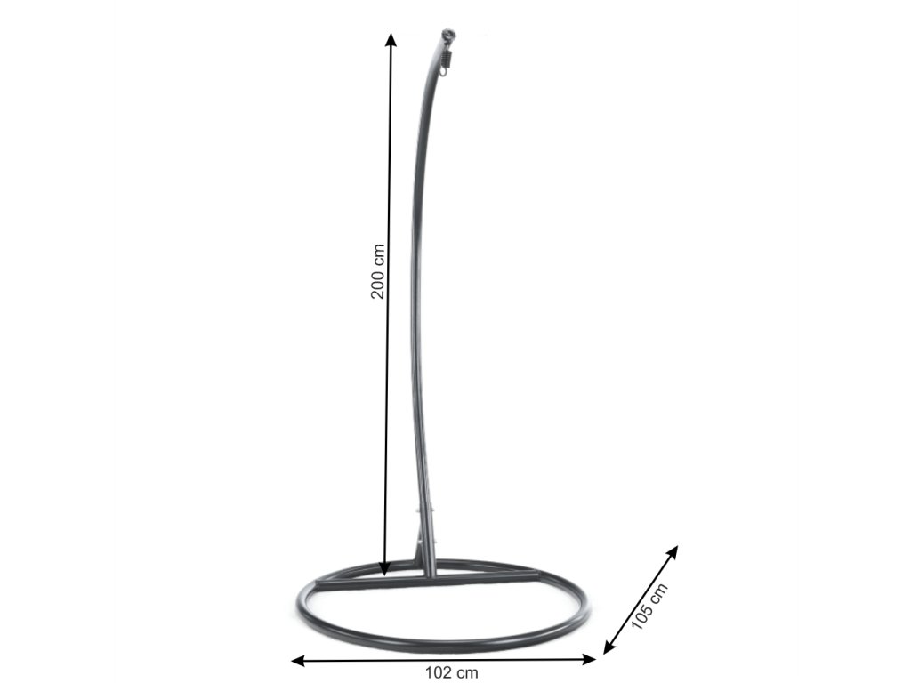 Vhodný pro většinu závěsných křesel s maximální nosností do 100 kg. Ideální pro zahradu, terasu i interiér, kde není možné kotvení do stropu.
