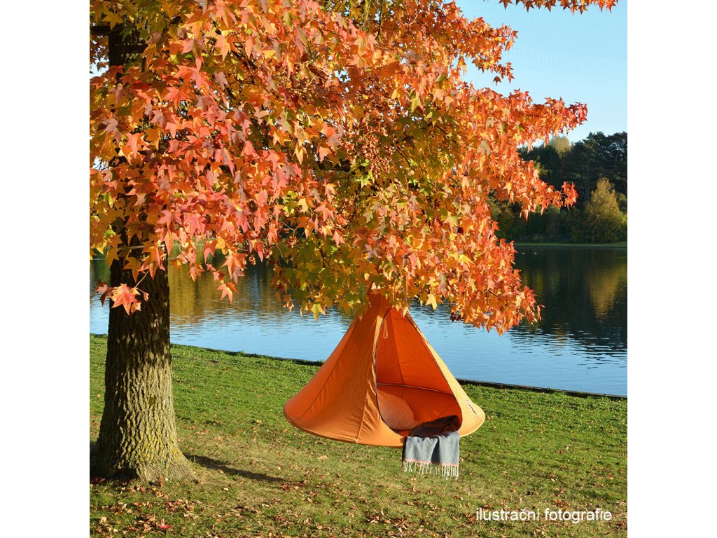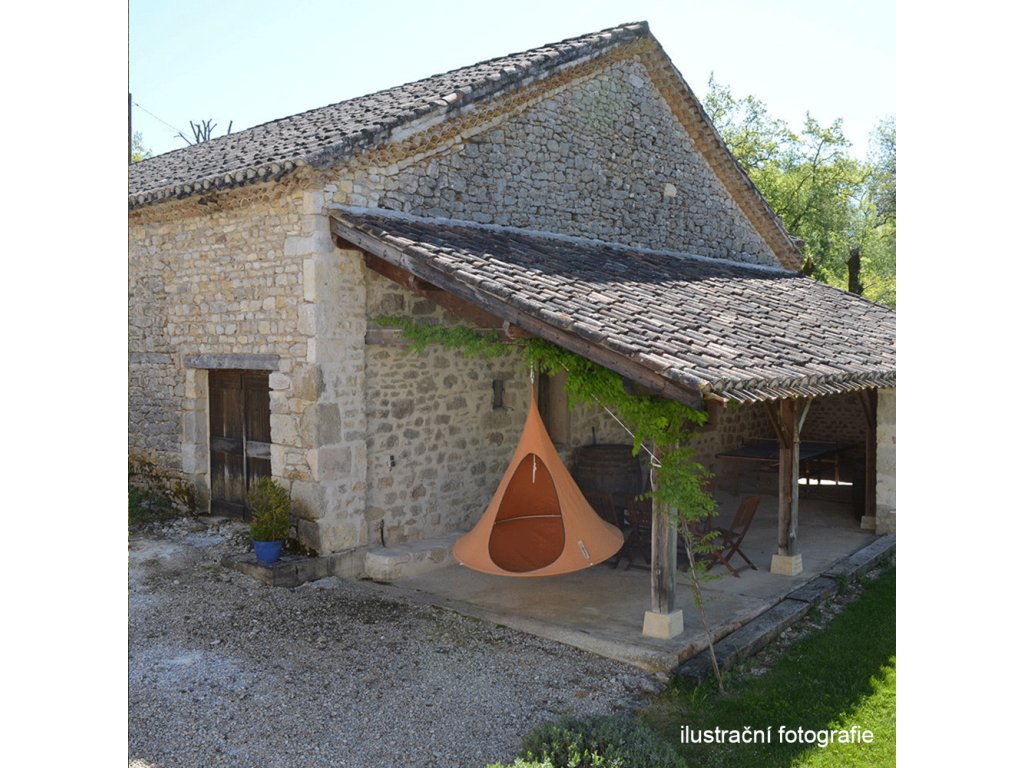 Křeslo je závěsné a lze jej upevnit na vhodný stojan nebo pevný bod. Stojan není součástí balení, ale lze jej doobjednat pro rychlou montáž a stabilitu.