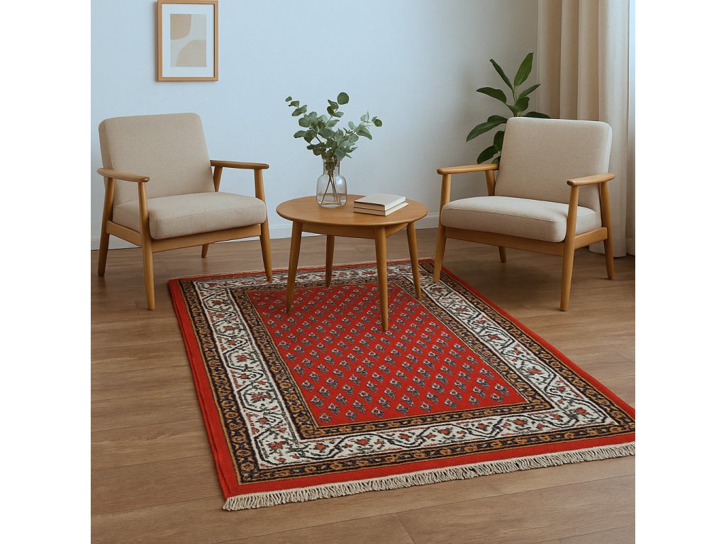 Kusový koberec Mir red je ručně tkaný v Indii, každý kus je unikátní. Vyroben je ze 100% ovčí vlny, která je přírodní a ekologická.