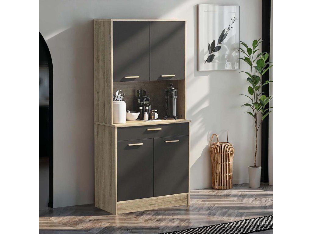 Příborník DOLCE v dekoru dub Kronberg s černými prvky nabízí dostatek prostoru díky čtyřem dvířkům, dvěma policím a zásuvce. Umožňuje přehledné uspořádání jídelního náčiní, nádobí i dalších doplňků.