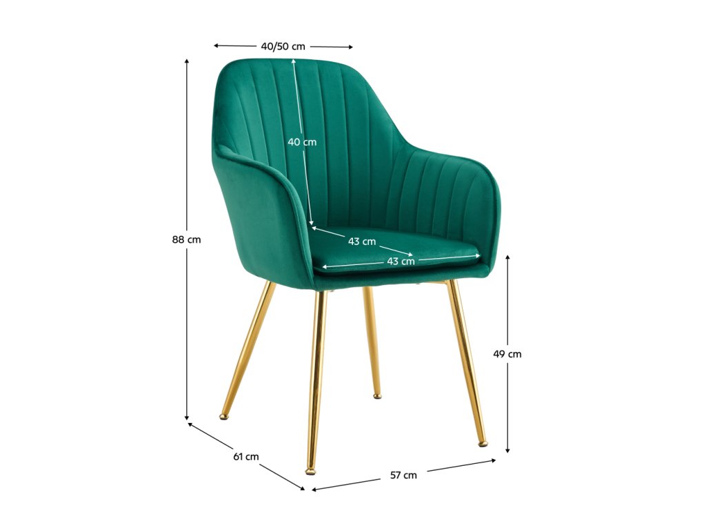 Elegantní křeslo s prošíváním, čalouněné smaragdovou Velvet látkou a zlatým chromovým rámem. Ideální pro moderní jídelny či obývací prostory.