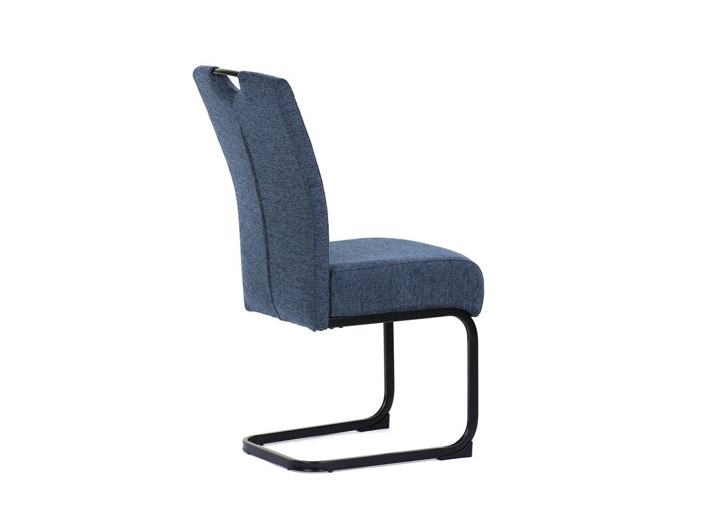 Stylová modrá látka a černé kovové nohy se hodí do různých interiérů. Jednoduché a elegantní provedení doplní každý jídelní prostor.