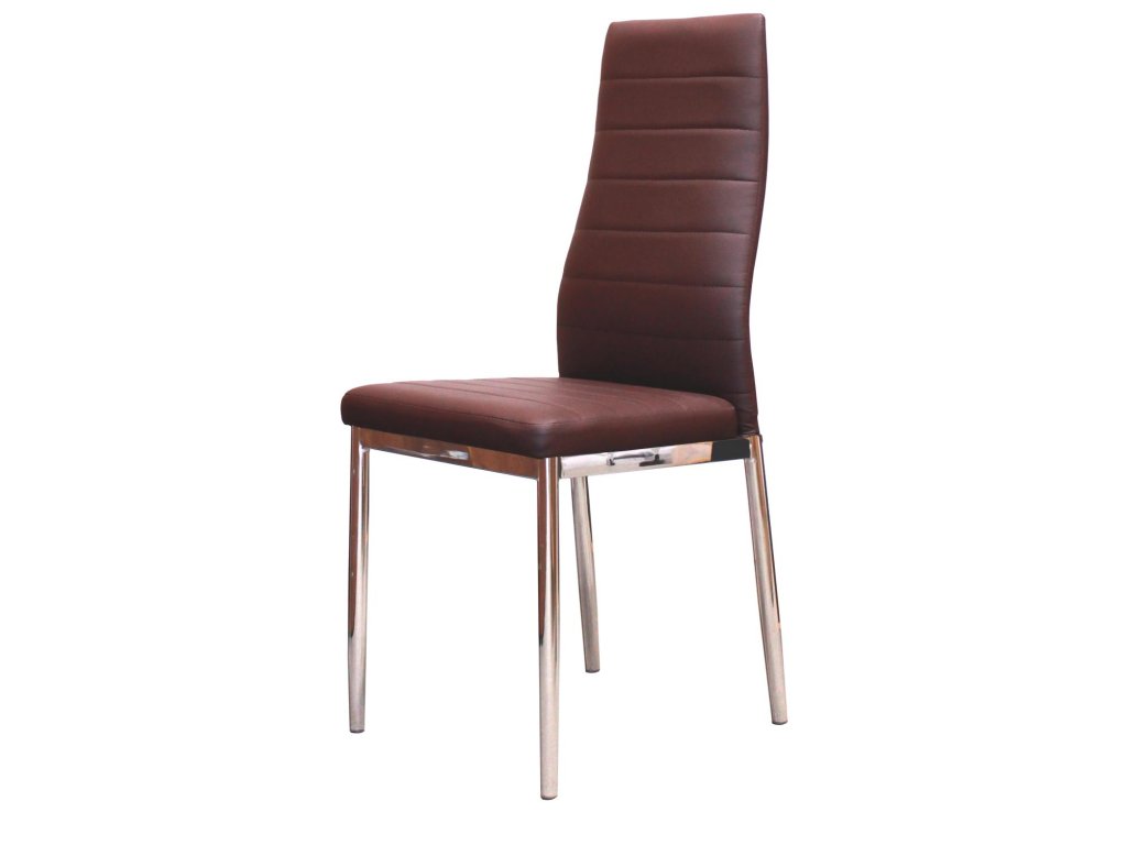 Židle má potah z kvalitní koženky, která je snadno udržovatelná a odolná vůči běžnému opotřebení. Kovové pochromované nohy zajišťují pevnost a stabilitu při každodenním používání.
