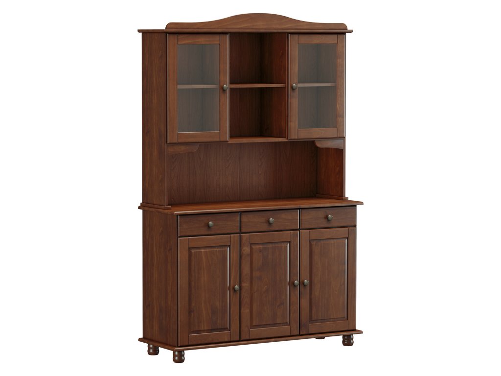 Příborník je vyroben z masivu borovice s povrchovou úpravou tmavě hnědým lakem, což zaručuje pevnost a odolnost nábytku.