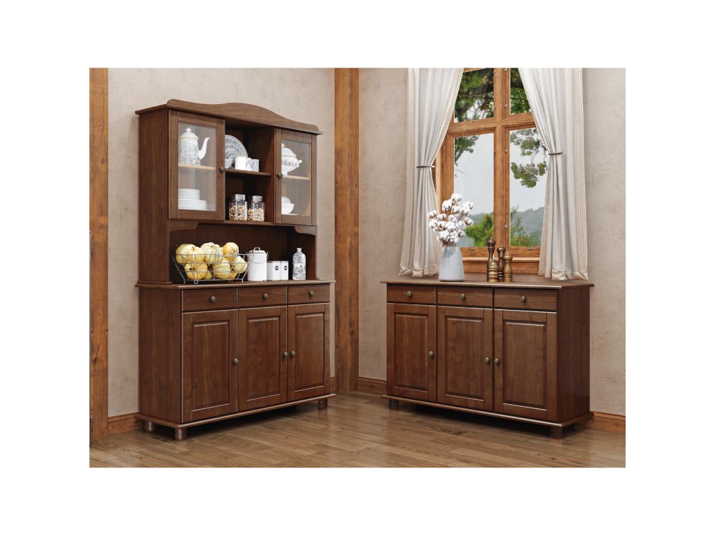 Vyroben z masivu borovice s tmavě hnědým lakem, příborník je odolný a stabilní. Kovové pojezdy zásuvek zajišťují hladký chod a dlouhou životnost nábytku.
