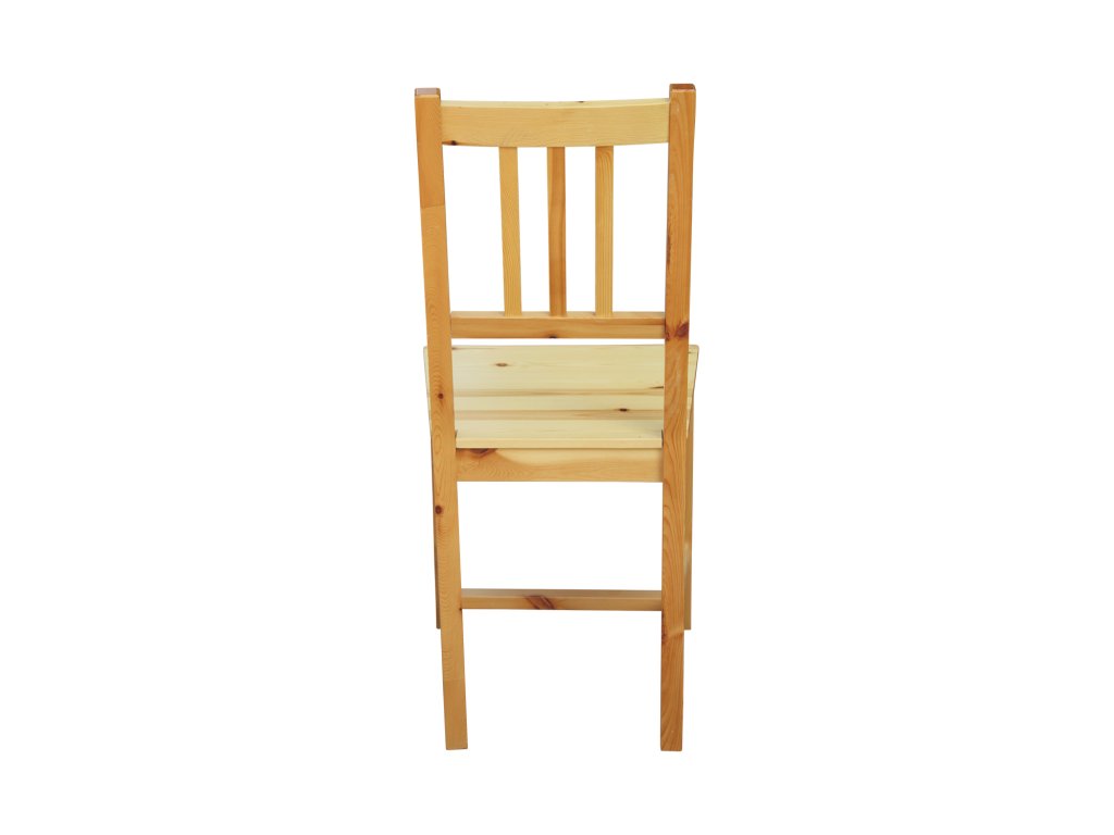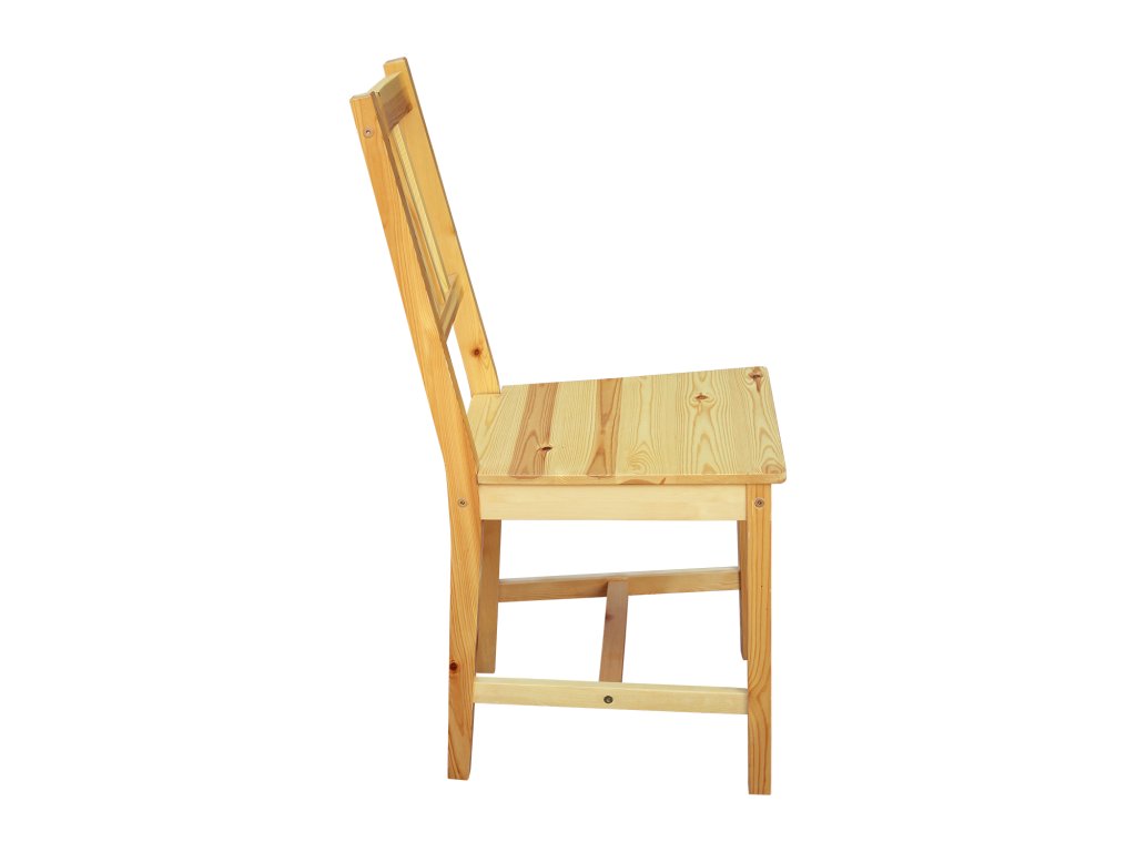 Židle je vyrobena z masivu borovice s lakovanou povrchovou úpravou, která zvyšuje odolnost a usnadňuje čištění.