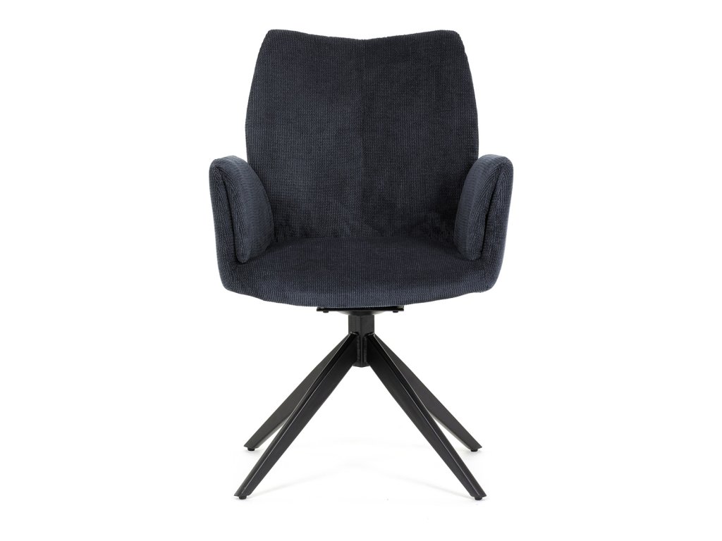 Židle jídelní, modrá látka, otočný mechanismus 180°, černý kov