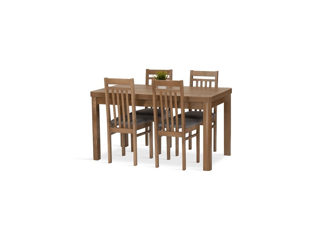 Součástí jsou čtyři židle s pevnou kostrou z bukového dřeva, mořeného tak, aby ladila s dekorem stolu. Sedáky jsou potažené šedou látkou pro pohodlné sezení.