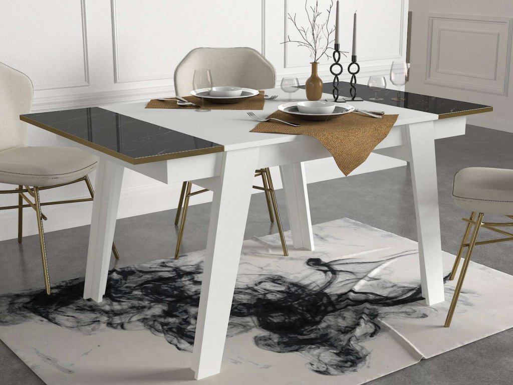 Camus jídelní stůl v bílé barvě s černým mramorovým povrchem je ideální pro moderní jídelny a kuchyně. Nabízí dostatek prostoru pro 6 osob a snadnou údržbu.