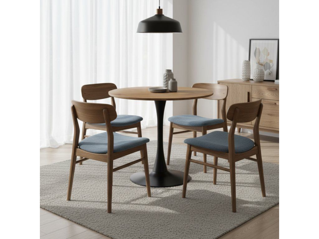 Ideální pro menší jídelny či kuchyně, nabízí stabilitu a styl. Snadno se hodí do různých interiérů díky kombinaci dubu a černé barvy.
