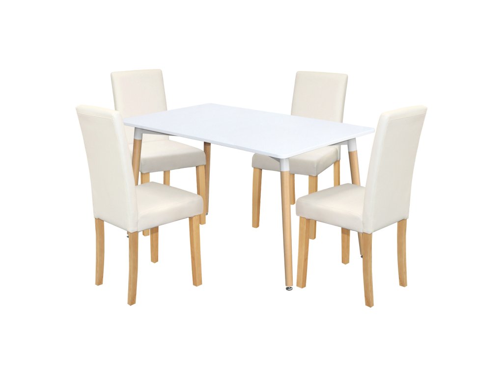 Jídelní stůl ONE 140x90 bílý + 4 židle PRIMA bílá/světlé nohy