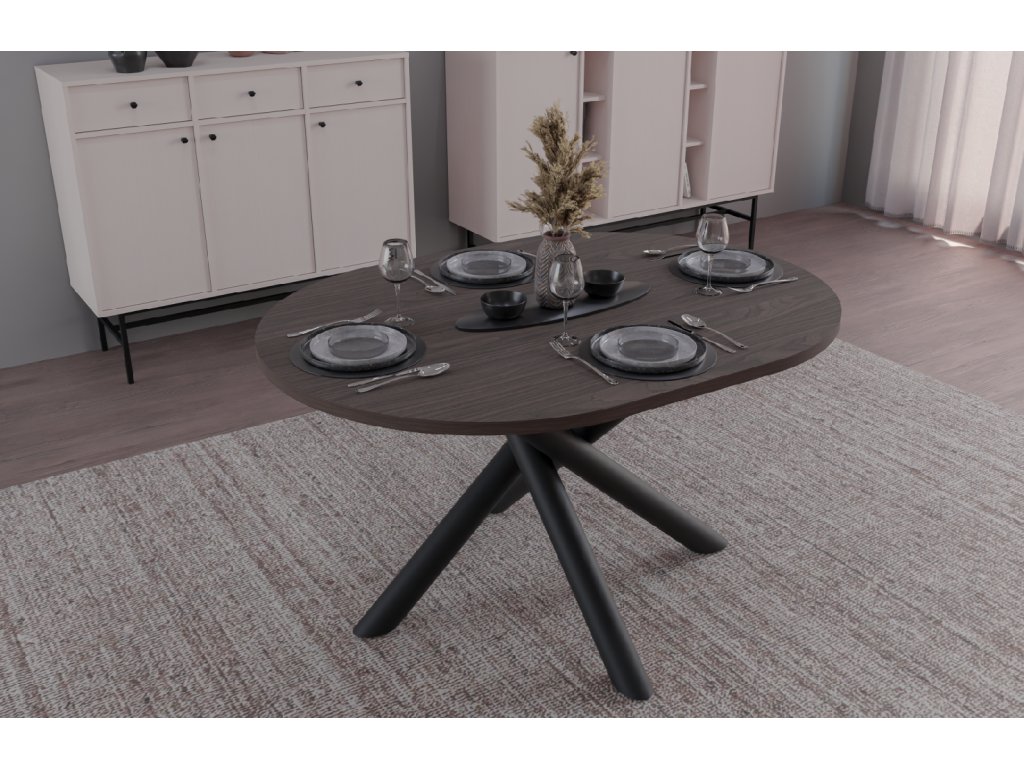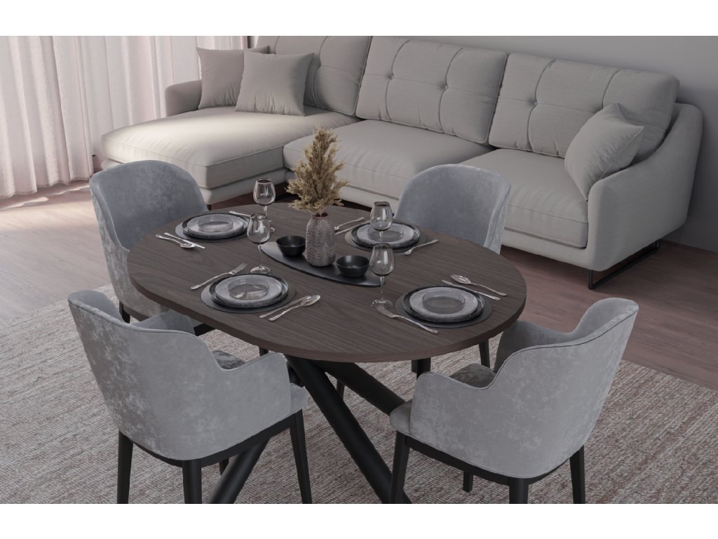 Osman je oválný stůl vhodný do jídelny, kuchyně nebo obývacího pokoje. Vyroben je z lamina s kovovými nohami ve stylu "pavouk".