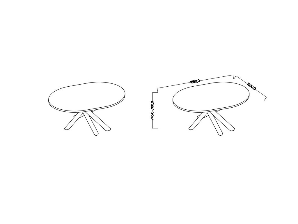 Stůl má oválný tvar s rozměry 138 x 100 cm a výškou 75 cm, což je ideální pro běžné rodinné stolování.