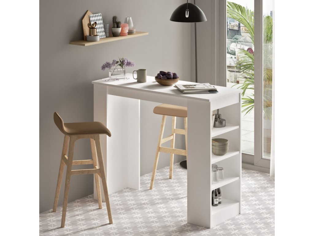 Představujeme vám barový stůl, který je dokonalým doplňkem do vašeho obývacího pokoje nebo jídelny. S jemným skandinávským designem a praktickým regálkem je to nejen kus nábytku, ale také skvělý spojenec pro organizaci vašeho prostoru.