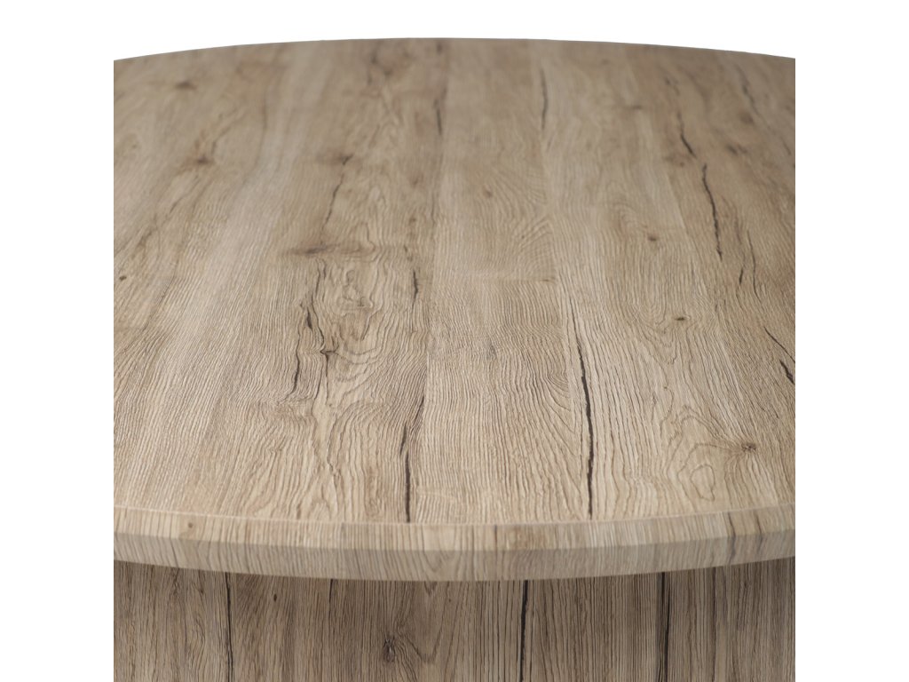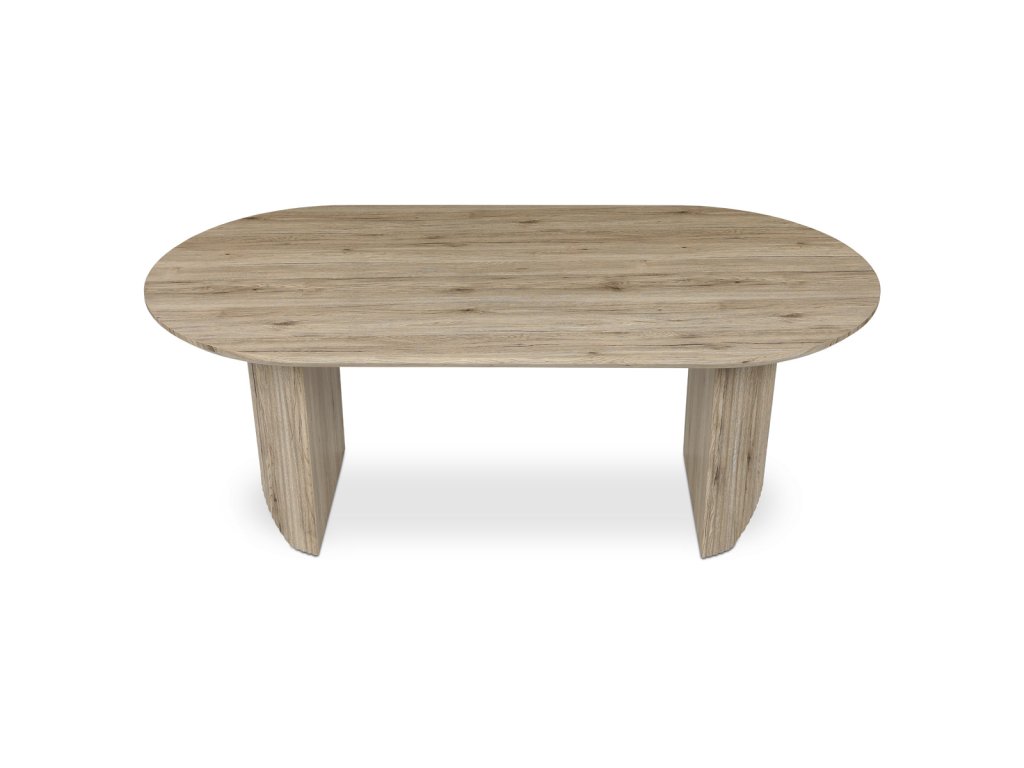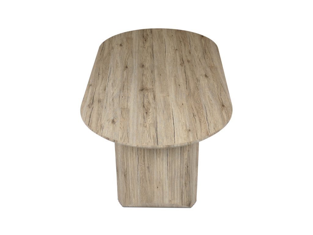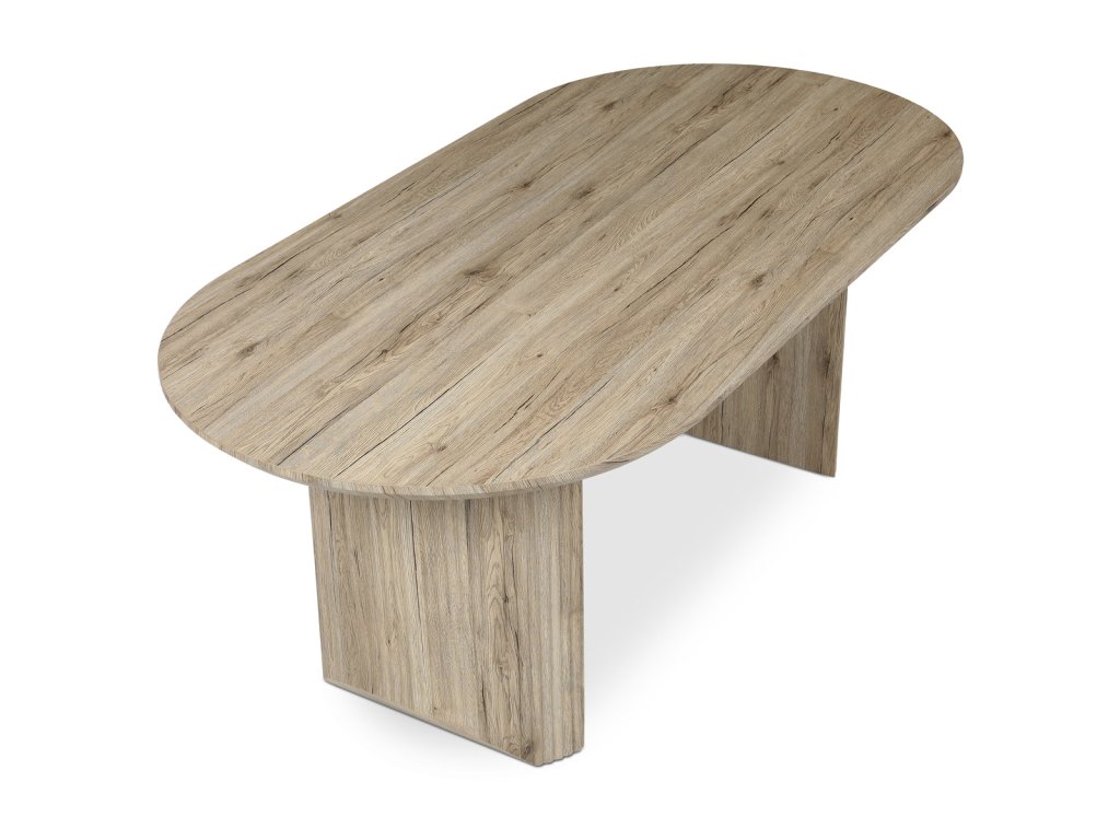 Oválná deska a nohy z MDF s matnou povrchovou úpravou dodávají stolu elegantní vzhled. Dekor dub San Remo přináší přírodní atmosféru do jídelny.