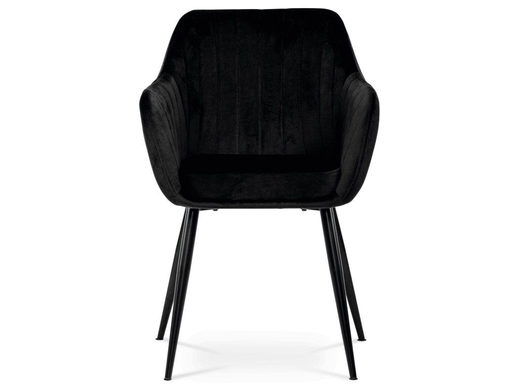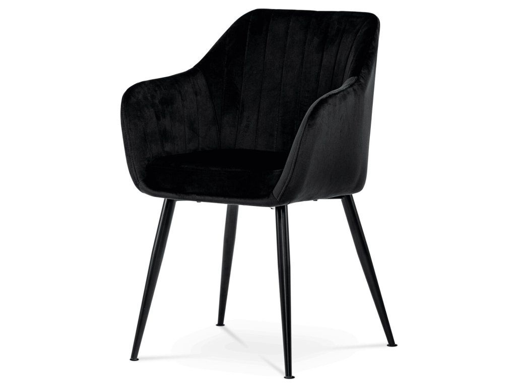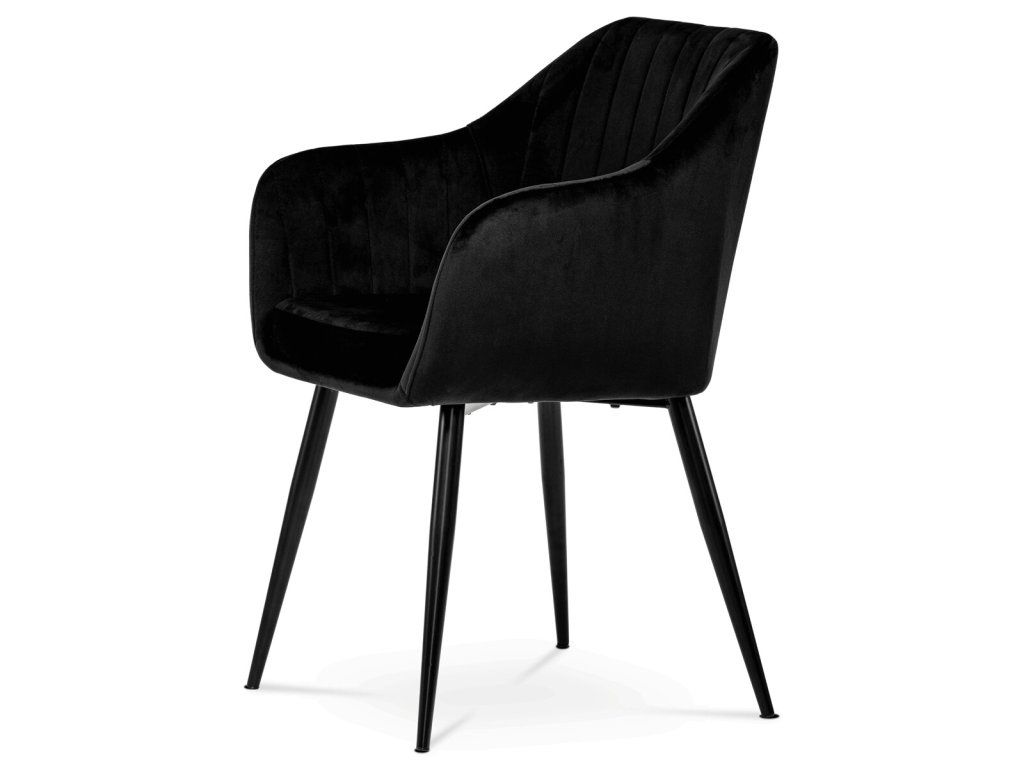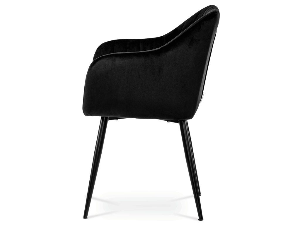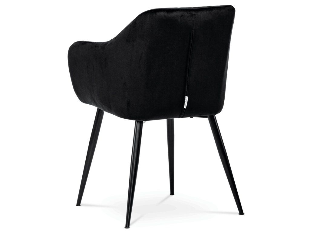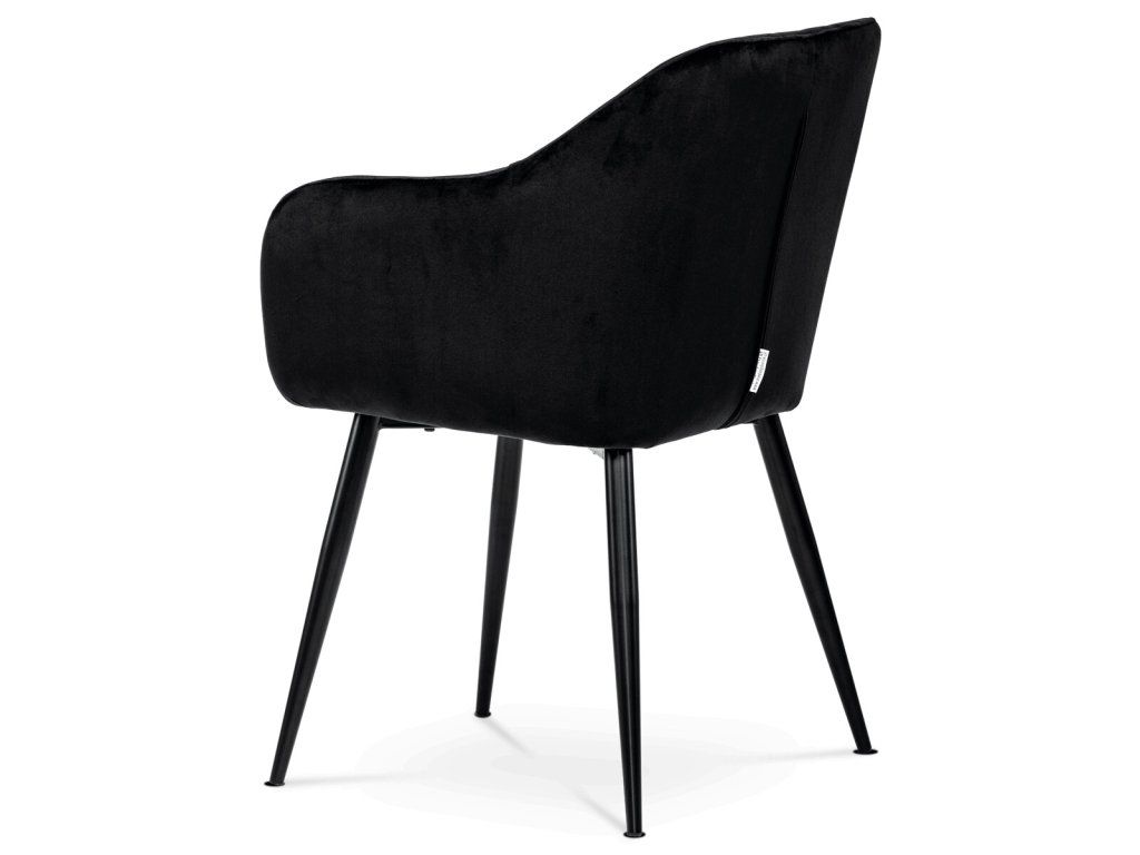 Černá sametová jídelní židle ARPIKA BK4 s kovovými nohami a pohodlným sedákem
