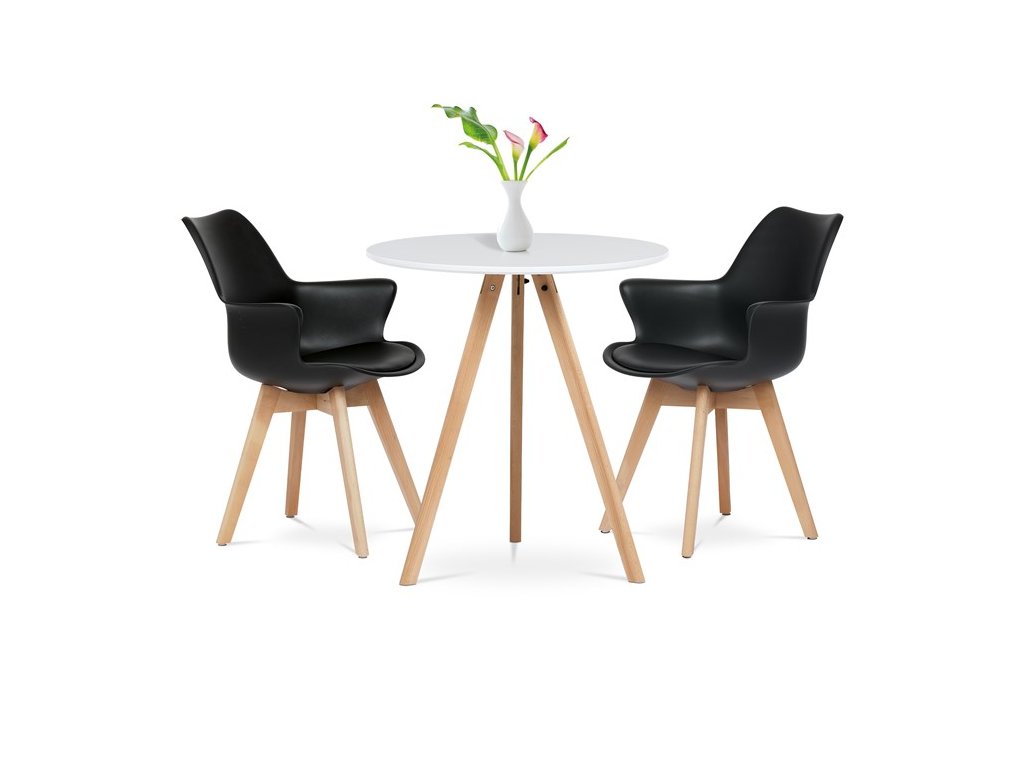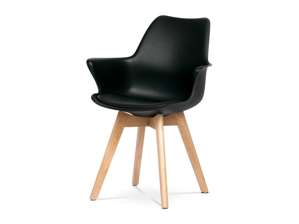 Skandinávský design s černou plastovou skořepinou a přírodními bukovými nohami. Ideální do kuchyně nebo jídelny, snadno se kombinuje s různým nábytkem.