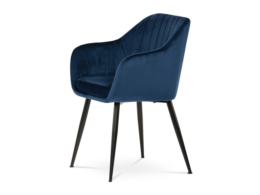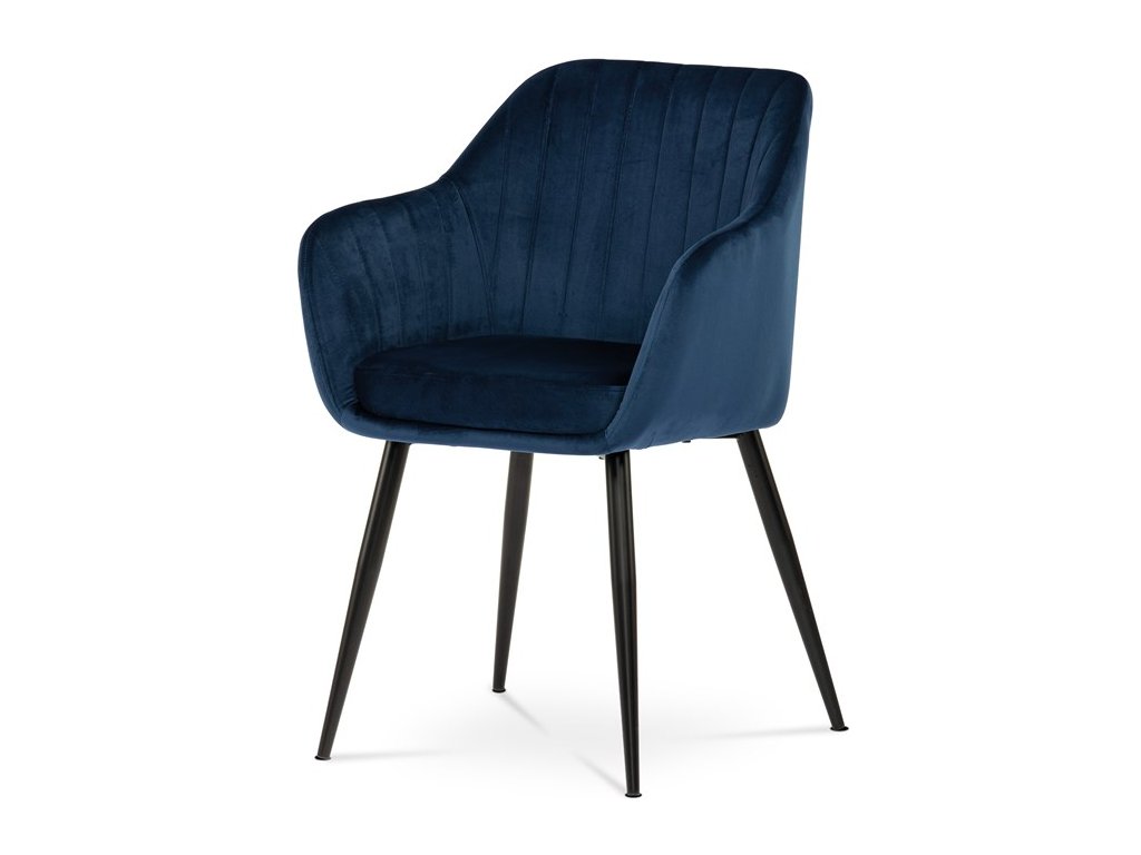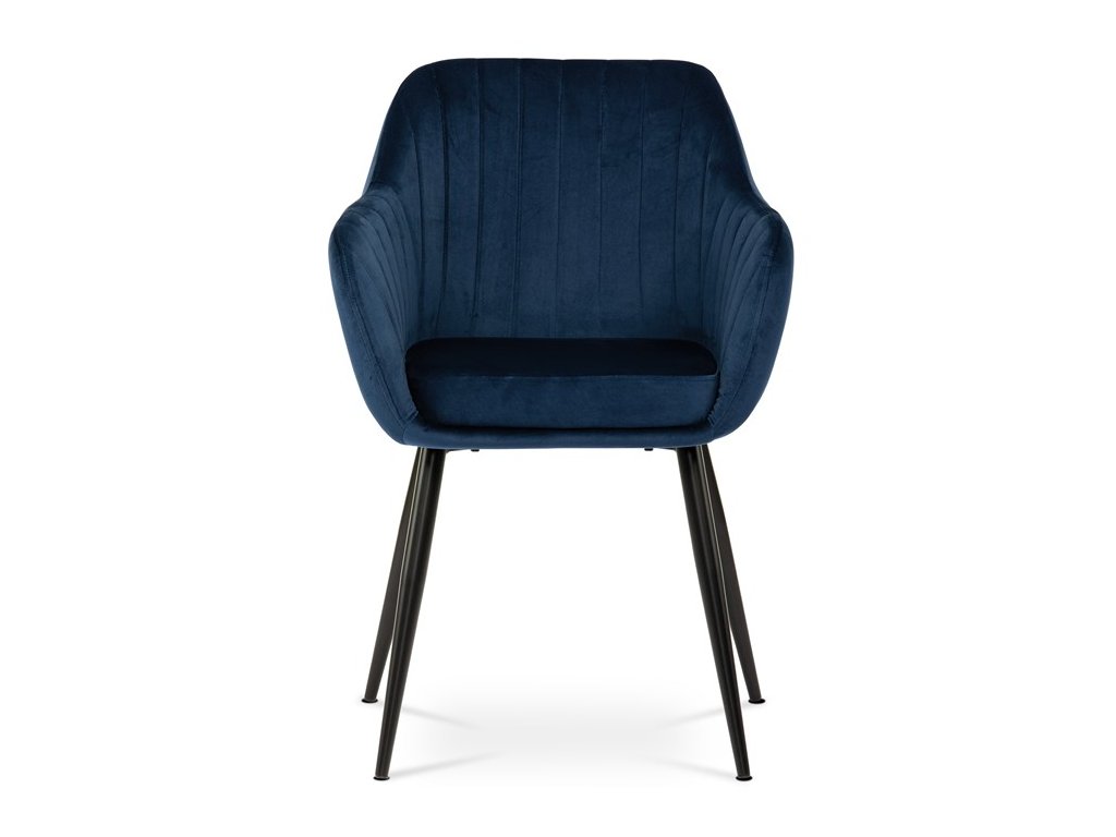 Jídelní židle ARPIKA BLUE4 nabízí pohodlné sezení díky polstrovanému sedáku a opěrkám potaženým odolnou sametovou látkou v elegantní modré barvě. Je ideální do jídelny, obývacího pokoje i zasedacích místností.