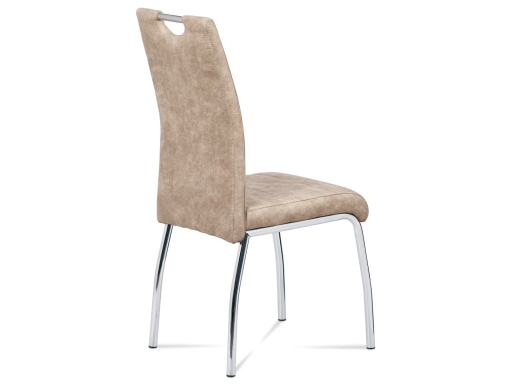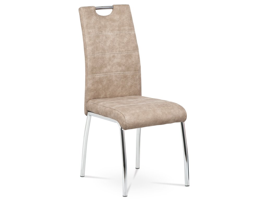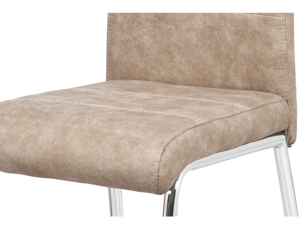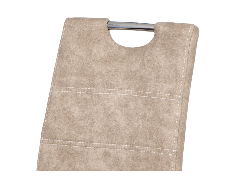 Jídelní židle s potahem z krémové látky COWBOY v dekoru vintage kůže nabízí moderní vzhled s bílým dekorativním prošitím. Hodí se do jídelny i kuchyně pro pohodlné posezení při jídle.