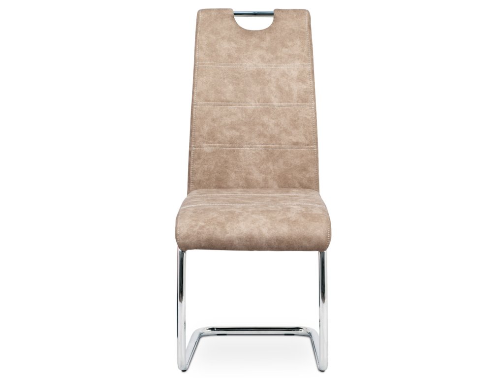 Jídelní židle, potah krémová látka COWBOY v dekoru vintage kůže, kovová chromova