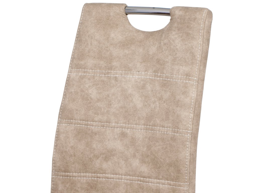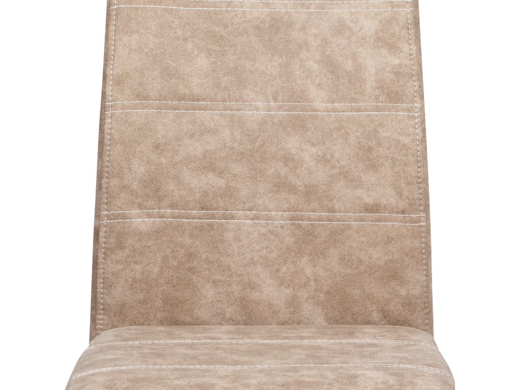 Židle s potahem z krémové látky COWBOY v dekoru vintage kůže nabízí stylový vzhled vhodný do moderních i retro interiérů. Bílé vodorovné prošití na sedáku a opěráku podtrhuje její jedinečný design.