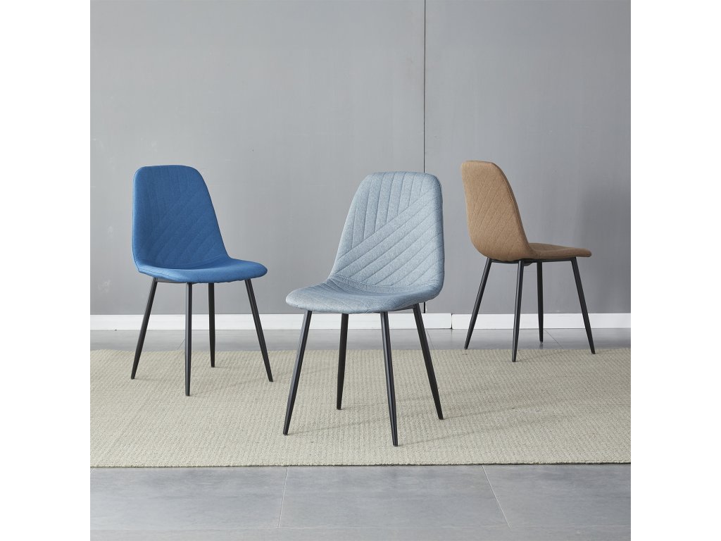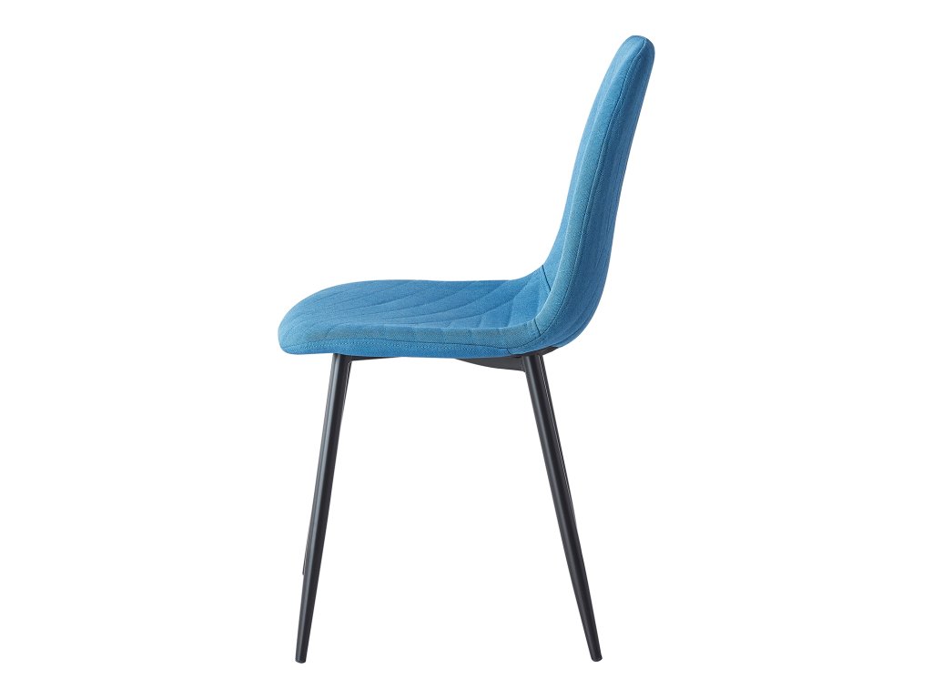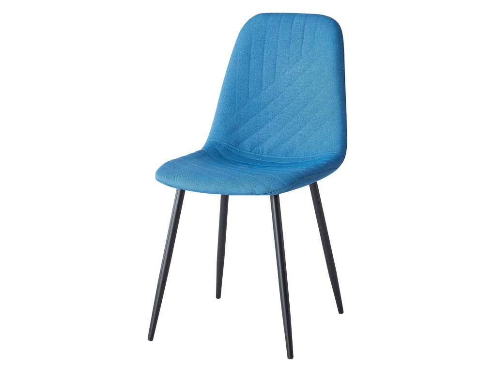 Textilní potah v modré barvě a kovová konstrukce zajišťují odolnost a snadnou údržbu. Výška sedu 47 cm je vhodná pro většinu jídelních stolů.