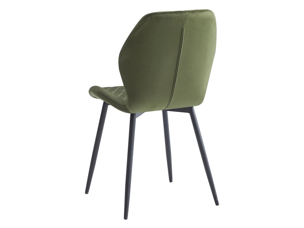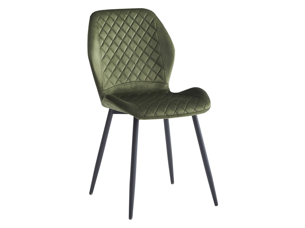 Židle má textilní potah v zelené barvě a kovovou konstrukci v černé. Výška sedu je 50 cm, což zajišťuje komfortní posezení u jídelního stolu.