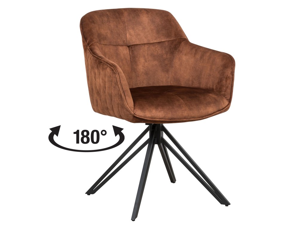 Potah je textilní v hnědé barvě, kovová konstrukce zajišťuje stabilitu a odolnost. Otočná o 180°, výška sedu je 49 cm, nosnost do 120 kg.