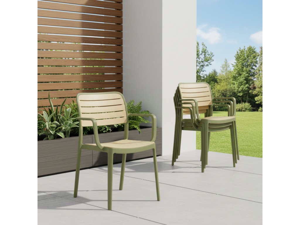 Ideální pro restaurace, kavárny nebo domácí použití. Snadno skladovatelná díky stohovací konstrukci, odolná vůči povětrnostním vlivům.