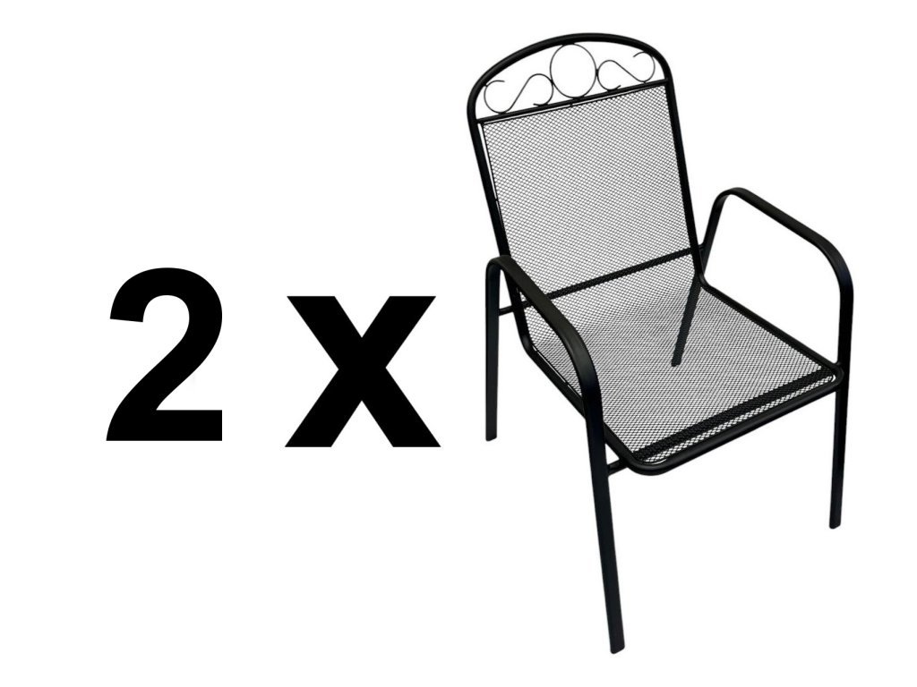 Set 2 ks židlí za zvýhodněnou cenu!Zahradní kovové křeslo. Díky volbě materiálu je křeslo lehce omyvatelné a jeho údržba není nijak náročná. Rozměry křesla jsou ( Š x V x H cm ) - 57 x 94 x 69 cm. Výška sedu je cca 43 cm. Barevné provedení - černá.