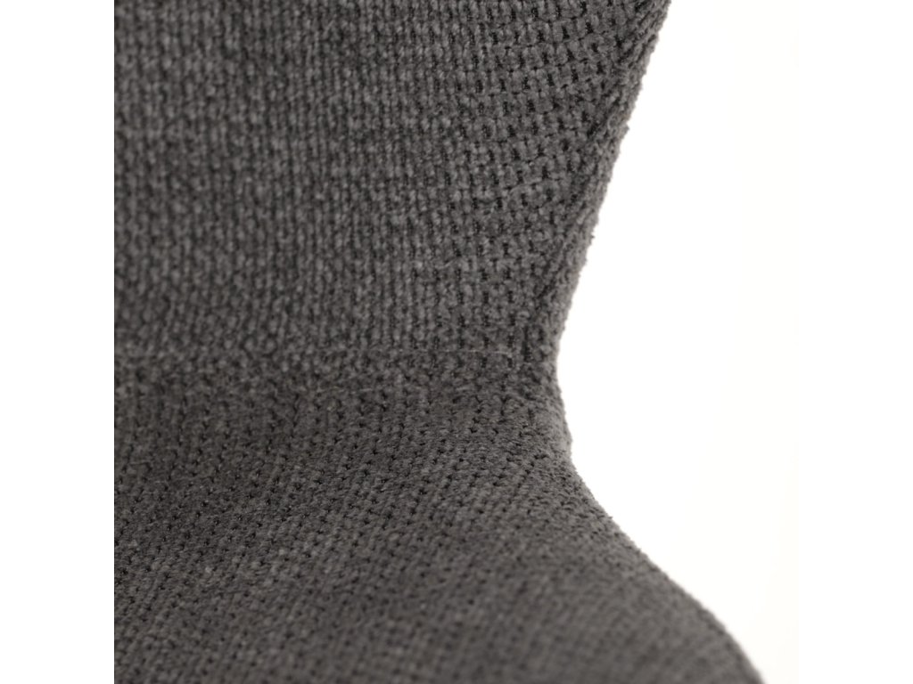Šedá látka s jemnými reliéfy zajišťuje příjemný pocit při sezení a snadnou údržbu. Vhodná pro dlouhodobé používání.