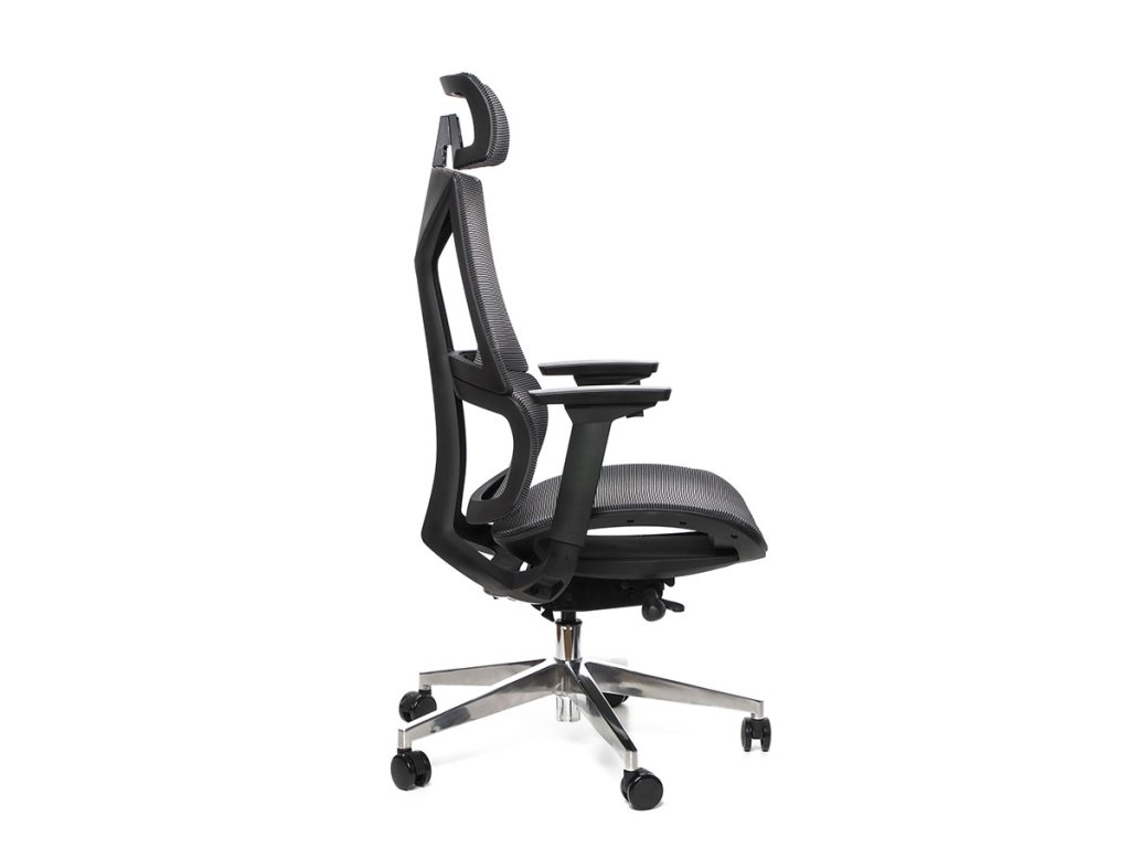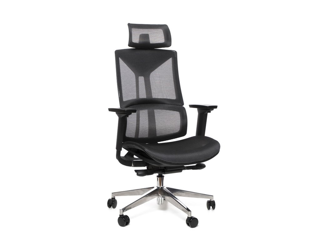 Kvalitní ergonomická vzdušná židle nabízející komfortní sezení se spoustou užitných vlastností. | výškově nastavitelný záhlavník, vysoký síťovaný dělený opěrák, spodní část opěráku se schopností protitlaku do beder, tvarovaný síťovaný prodyšný sedák se speciální měkkou pěnou na přední straně, 3D nastavitelné područky s polyuretanovými krytkami, integrovaný synchronní mechanismus s vícebodovou aretací, možnost nastavení kývání sedáku dopředu, hloubkové nastavení sedáku, aluminiový kříž, univerzální kolečka Ø 60mm, v barevném provedení: černá, dodání v demontu v kartonu 77x35x65 cm, váha židle 18 kgDoplňkové parametry