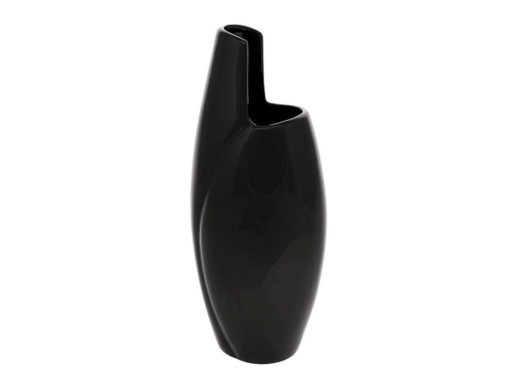 Černá keramická váza s lesklým povrchem je vhodná pro dekoraci interiéru i pro aranžování živých květin. Její originální tvar dodá prostoru stylový a moderní vzhled.