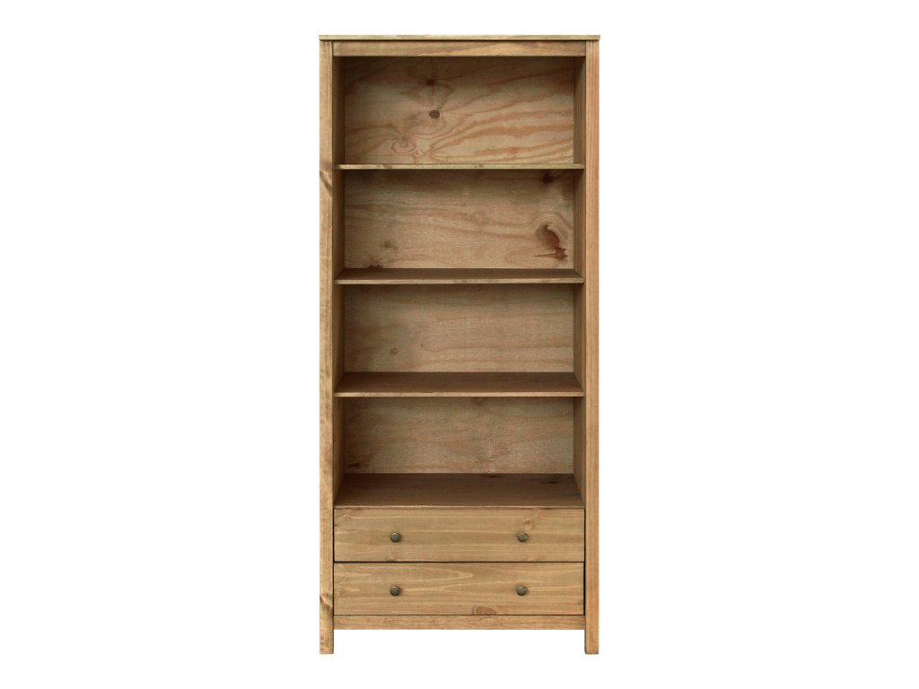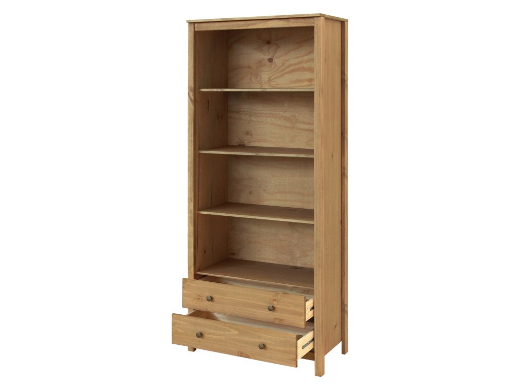 Knihovna je vyrobena z masivní borovice, která je voskovaná v medovém odstínu pro zvýraznění přirozené struktury dřeva.