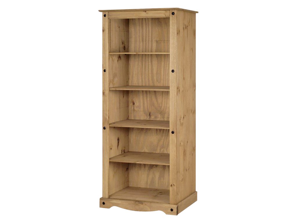Knihovna CORONA 3 s čtyřmi policemi je vyrobena z voskované borovice v medovém odstínu. Nabízí pevnou a stabilní konstrukci vhodnou pro uložení knih, dekorací i praktických předmětů.