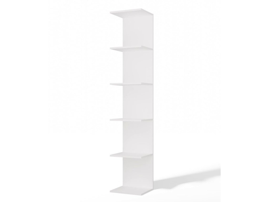 Bílá minimalistická knihovna Poppy 6P s 6 policemi do obývacího pokoje