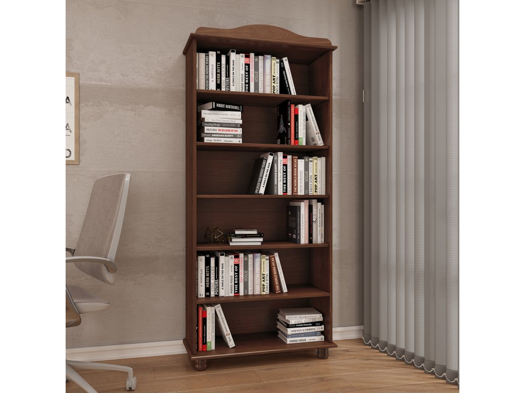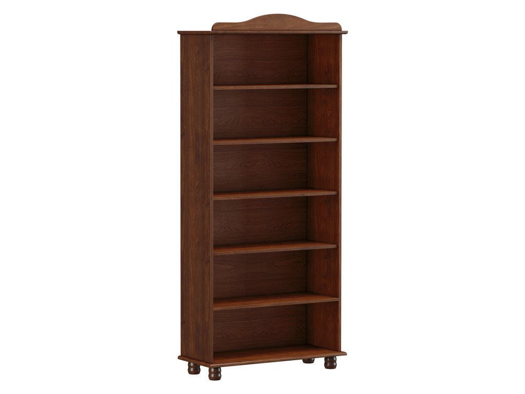 Vyrobena z masivu borovice s tmavě hnědým lakem, který zvýrazní přirozenou strukturu dřeva. Disponuje pěti policemi pro dostatek úložného prostoru.