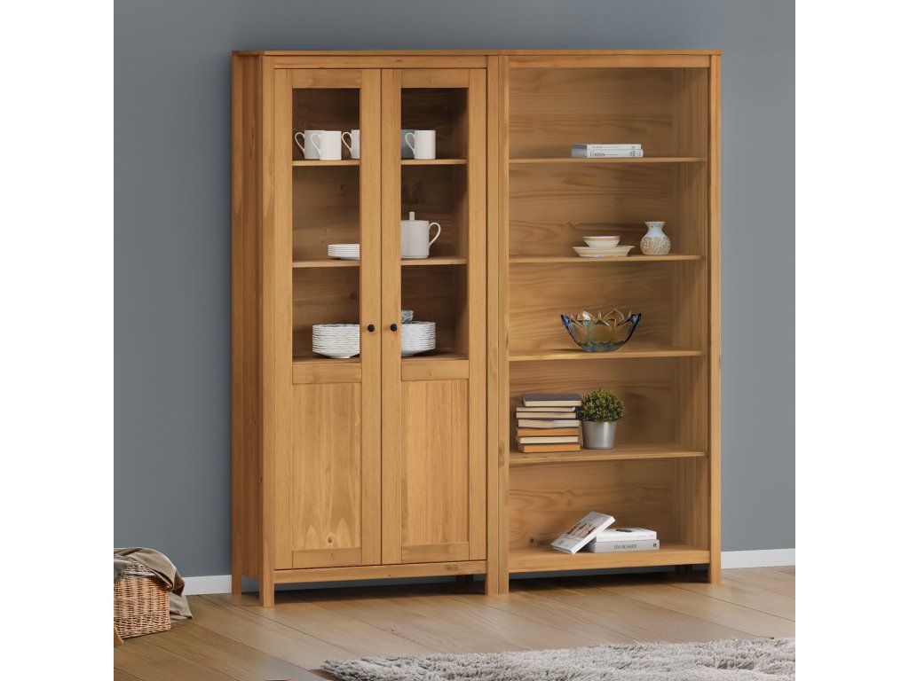 Knihovna je vyrobena z masivní borovice s voskovanou povrchovou úpravou, která chrání dřevo a zvýrazňuje jeho přirozenou strukturu.