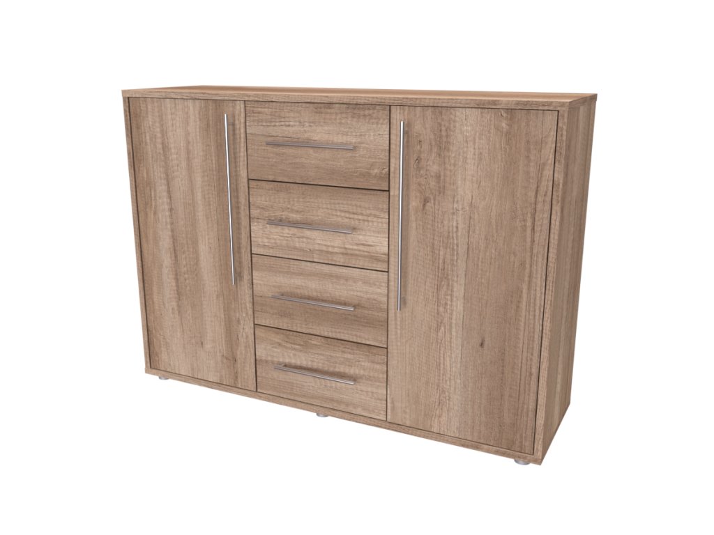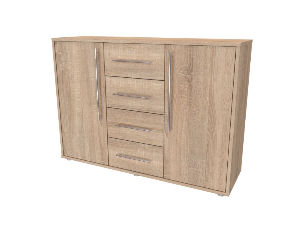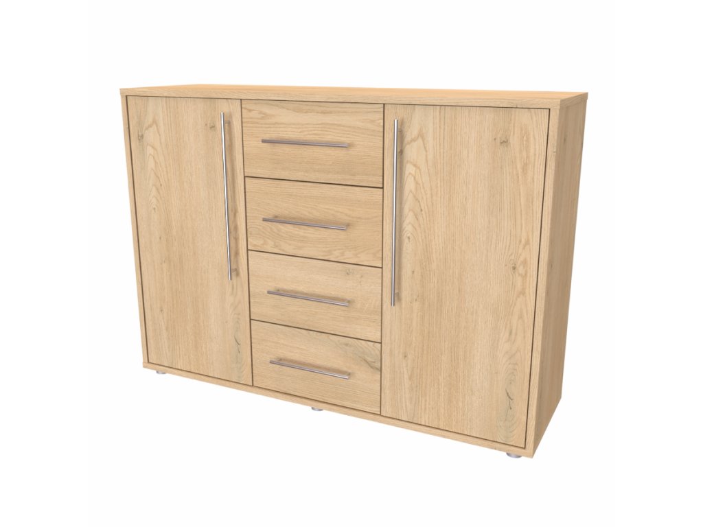 Rozměry komody umožňují její umístění i do menších místností, přičemž nabízí dostatek úložného prostoru a přehlednost.