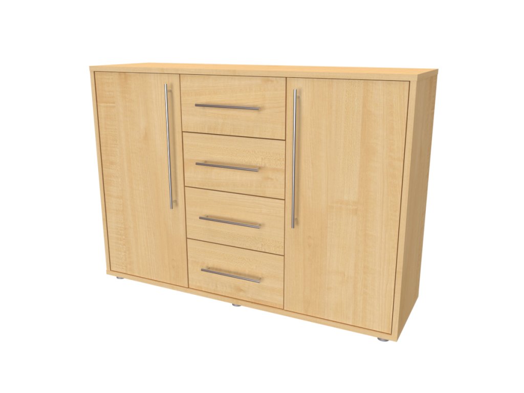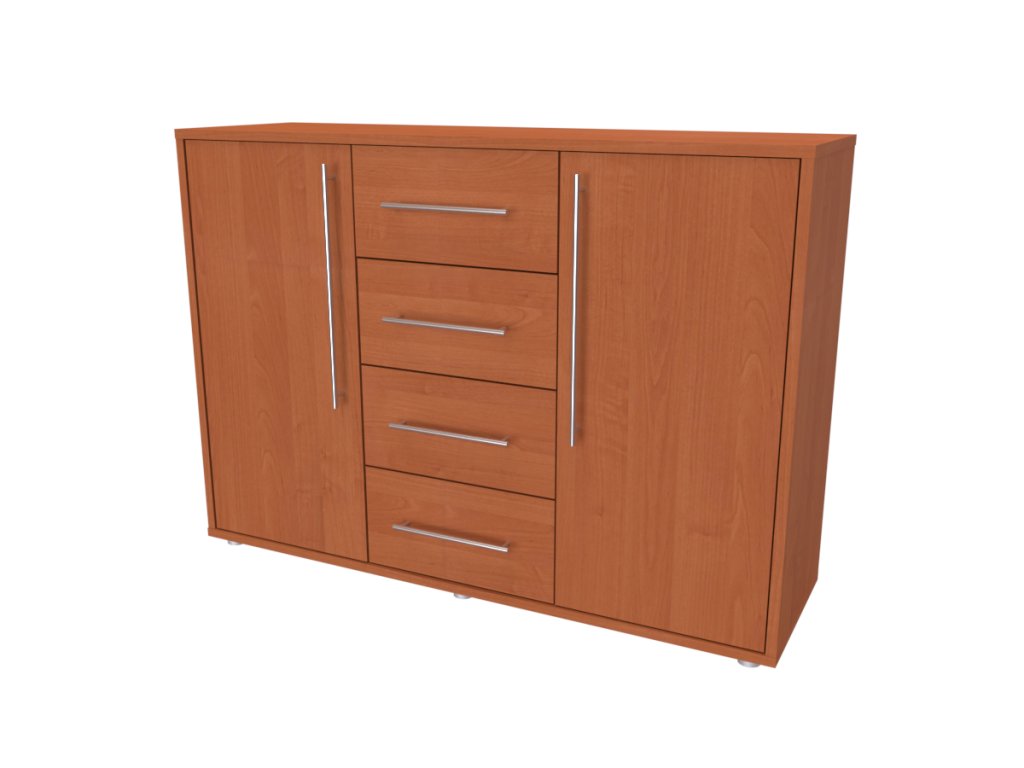 Vyrobena z lamina o síle 18 mm, s pečlivě navrženými zásuvkami a kovovými pojezdy. Odolná vůči opotřebení a snadná údržba.