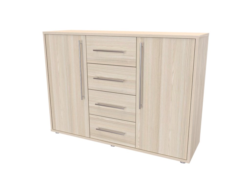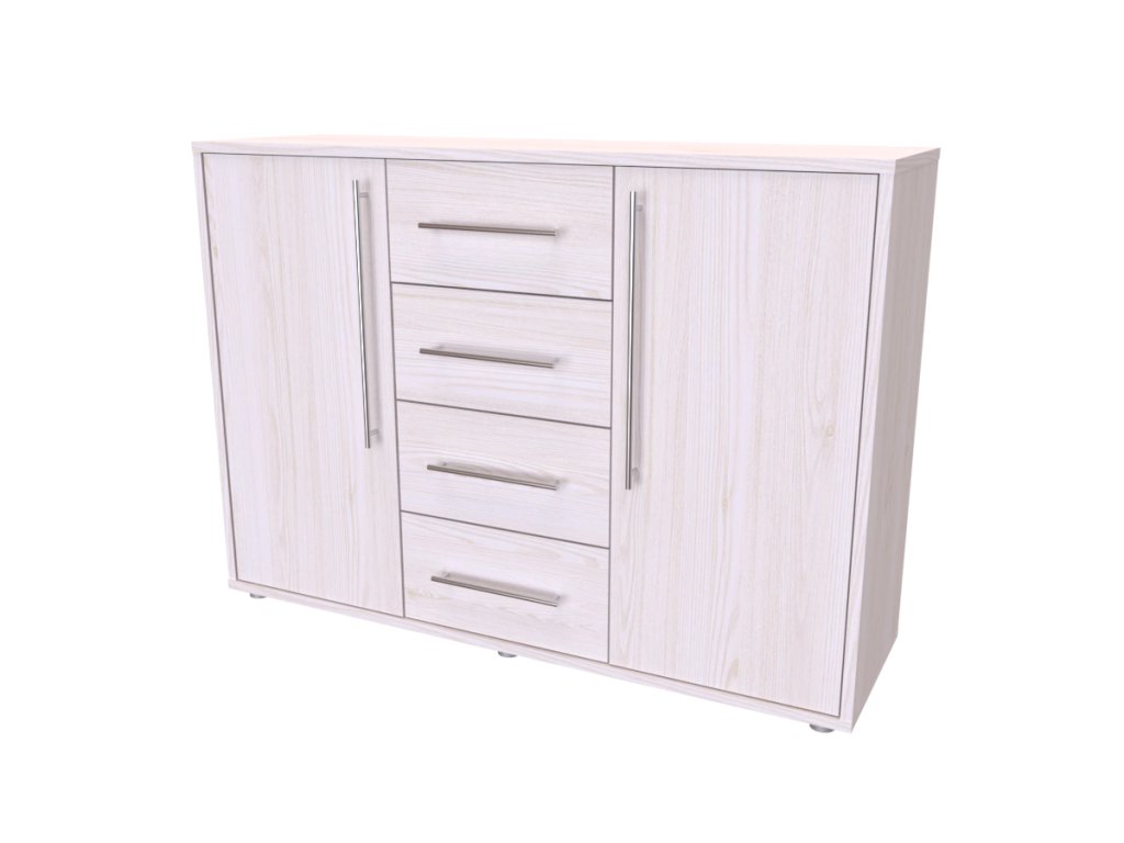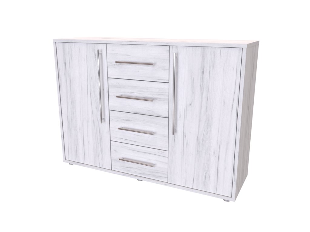 Komoda je dostupná v dekoru modřín latté, s možností výběru dalších dekorů podle nabídky.