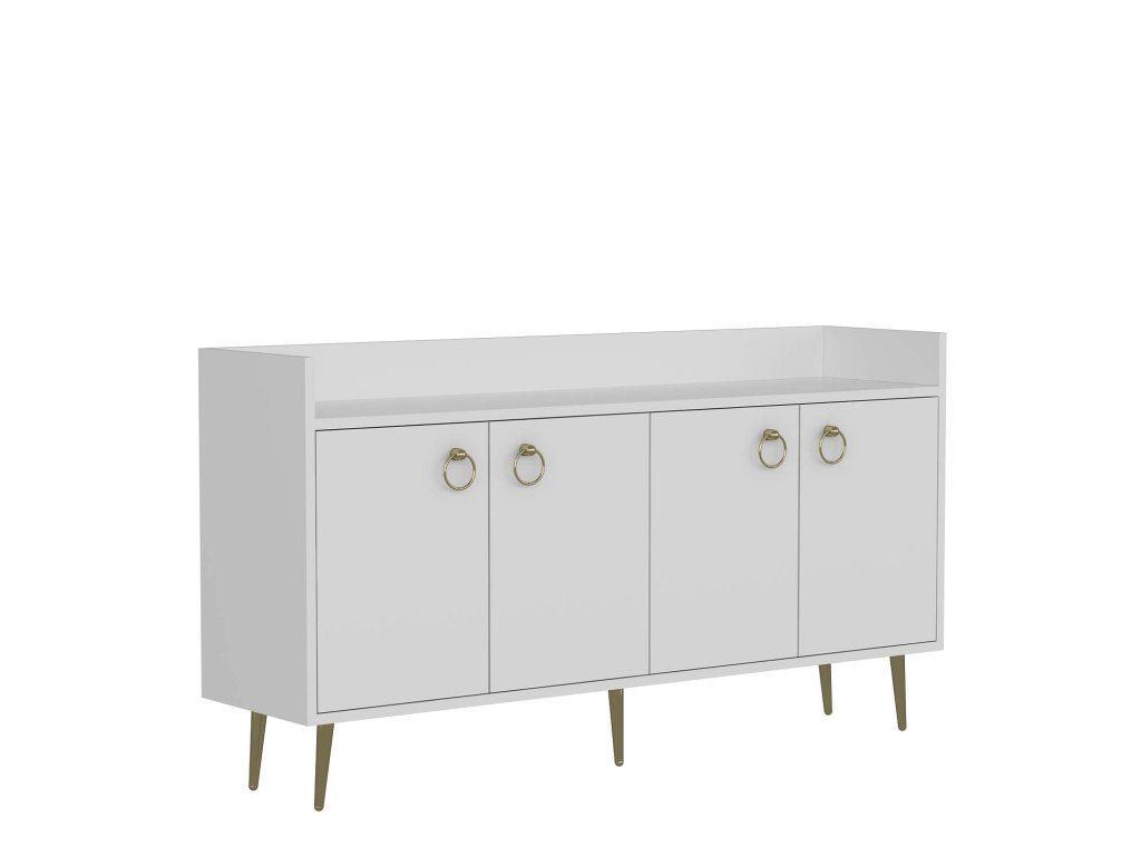 EWAN komoda na nožičkách v bílé barvě je ideální do obývacího pokoje nebo předsíně. Nabízí dostatek prostoru díky čtyřem plným dvířkům a odkládací polici.