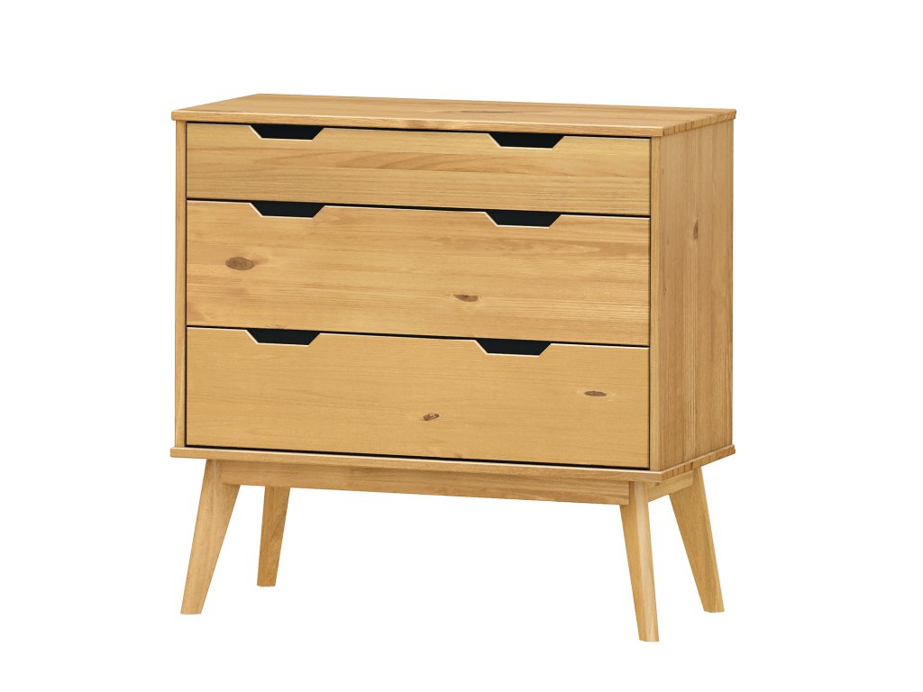 Komoda 2+1 zásuvky BONITO vosk je ideální pro organizaci a ukládání drobností v obývacím pokoji, ložnici nebo předsíni. Vyrobena z masivní borovice s voskovaným povrchem v medovém odstínu, nabízí pevnost a přírodní vzhled.