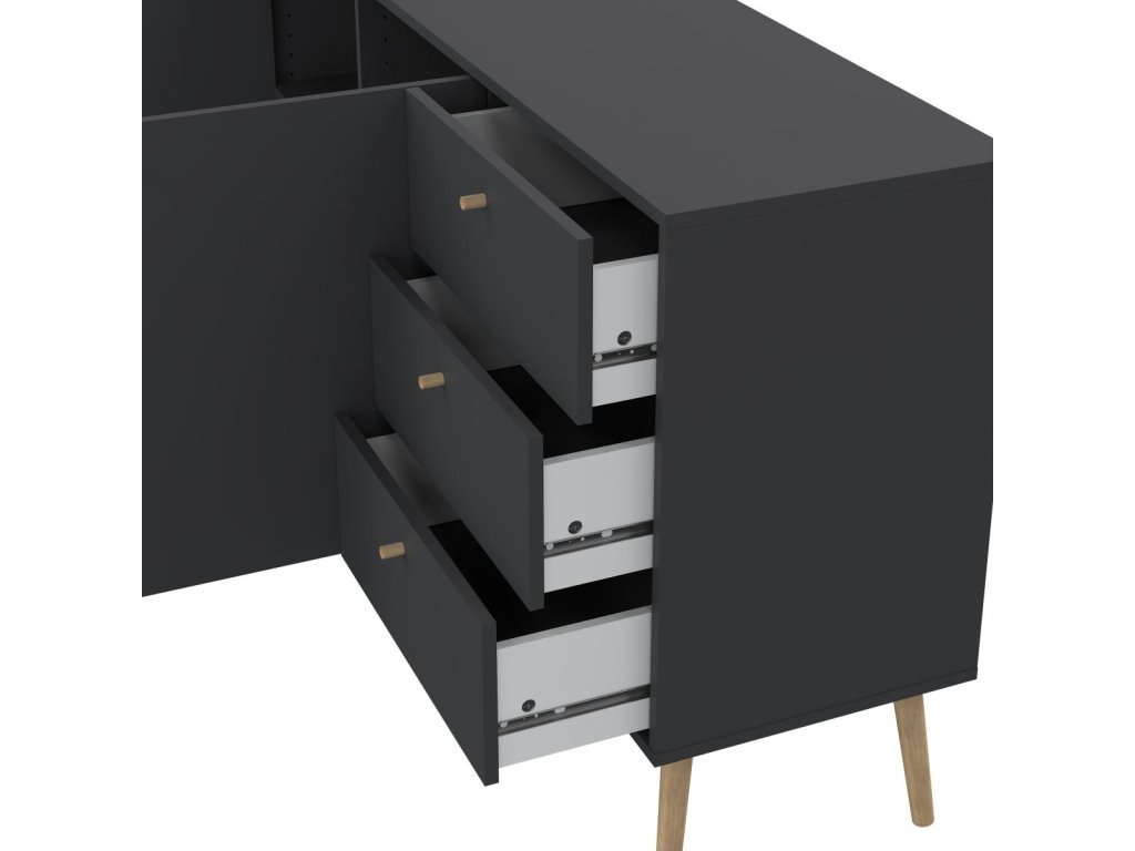 Komoda je dodávána v demontu s montážním návodem a spojovacími prvky. Vyrobená z lamina o tloušťce 15 mm, odolná a snadná na údržbu.