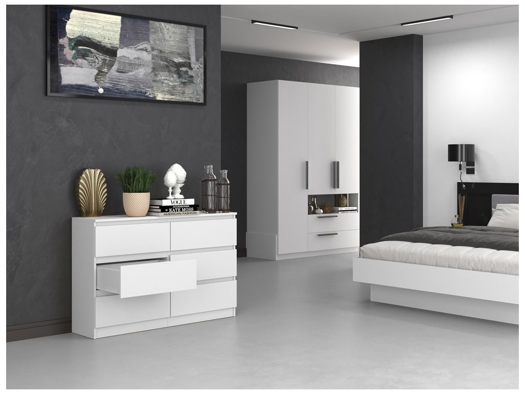 Komoda Malvína M6 120 bílá nabízí dostatek úložného místa pro vaše věci v obývacím pokoji, ložnici nebo předsíni. Ideální pro uspořádání drobností a dokumentů.