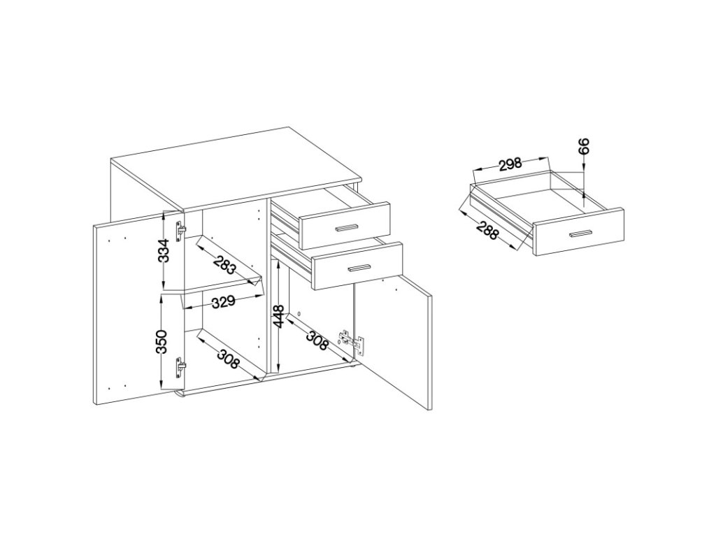 Komoda Mileta 2 buk nabízí dostatek prostoru pro uložení oblečení, dokumentů nebo drobností. Ideální do obývacího pokoje, ložnice či předsíně.