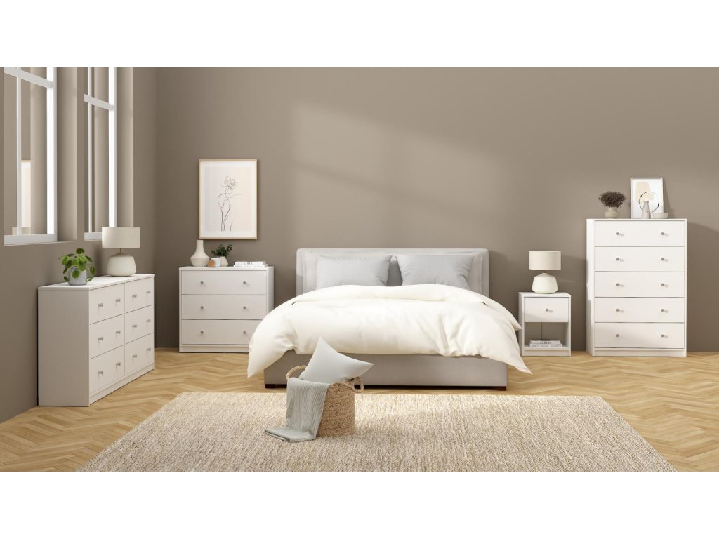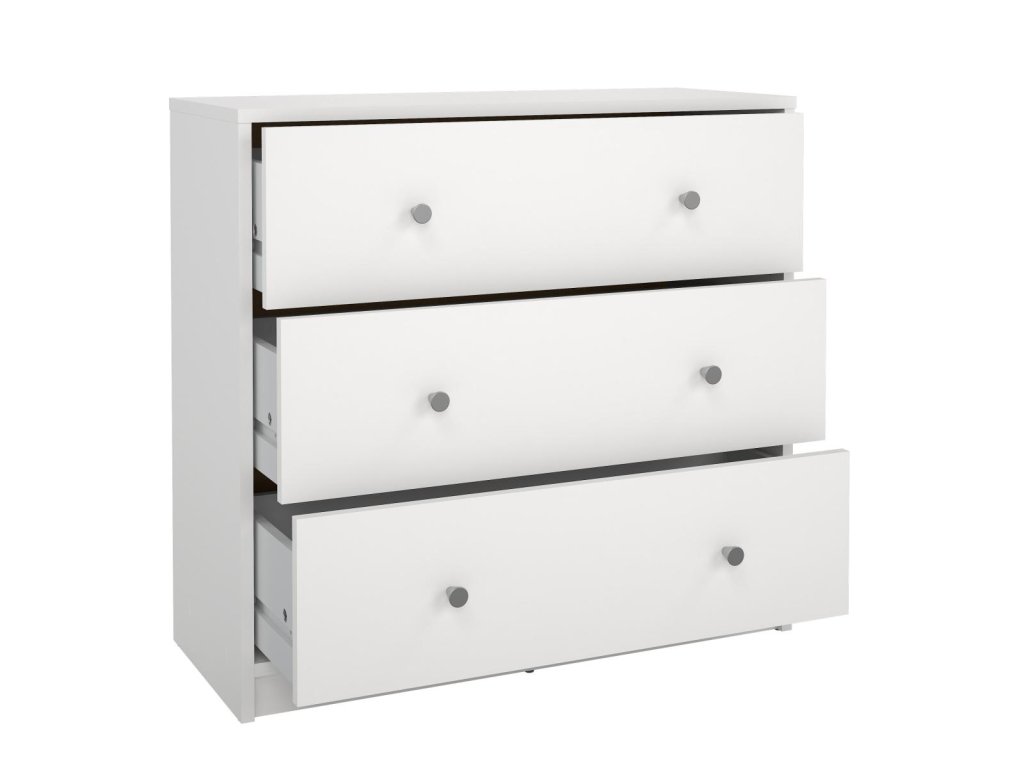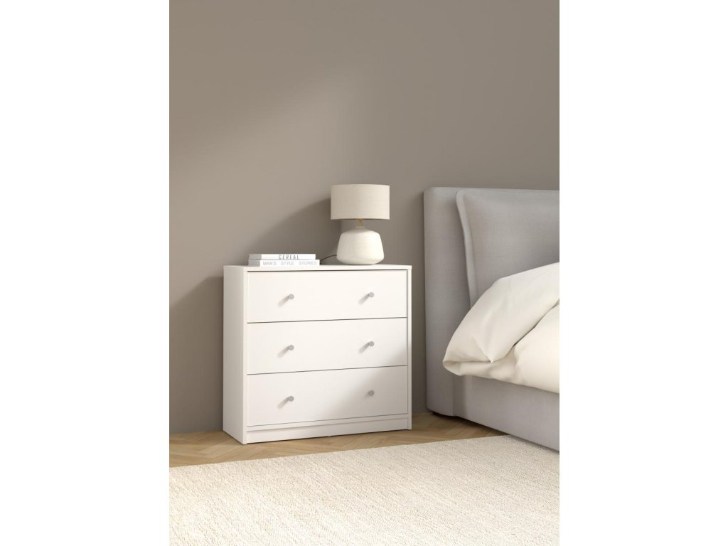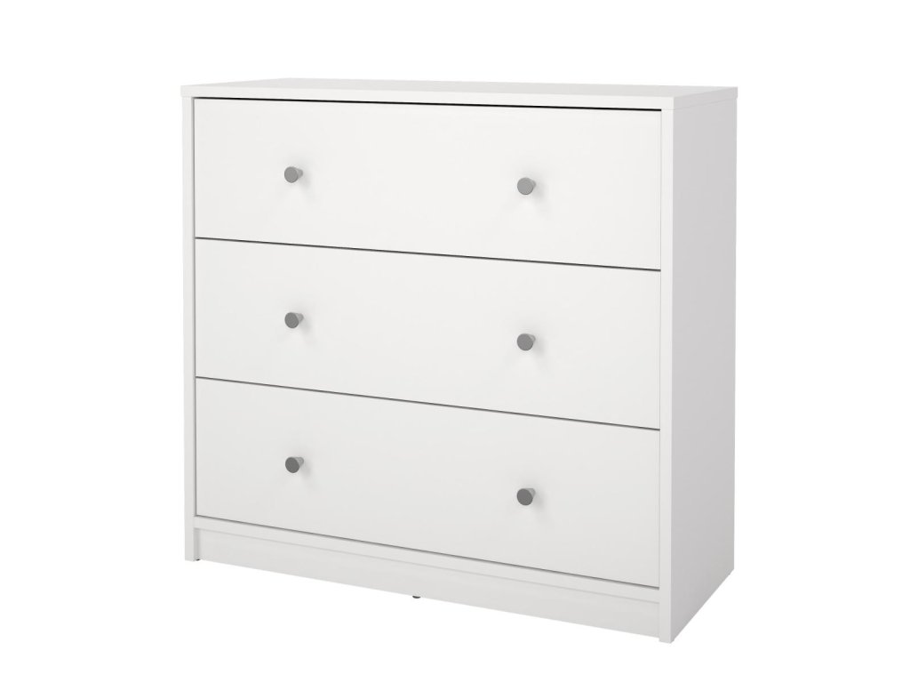 Komoda Myra 332 v bílé barvě nabízí čtyři prostorné zásuvky, které pomohou udržet pořádek v malých i větších místnostech. Ideální pro uložení oblečení, dokumentů nebo domácích drobností.
