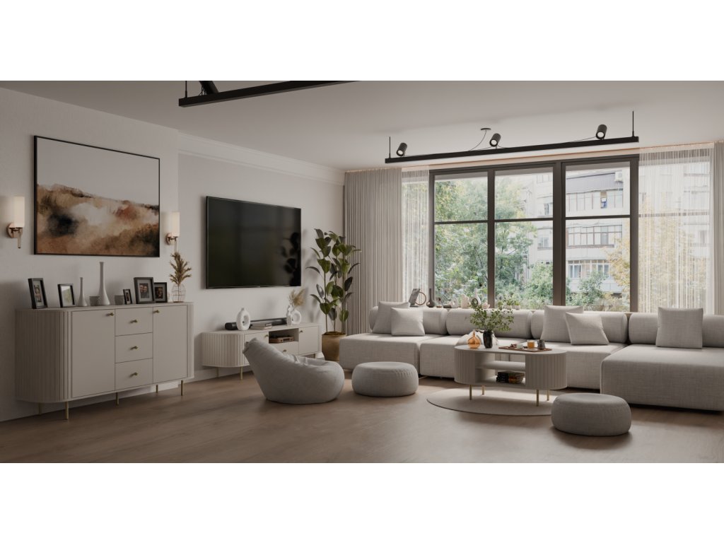 Objevte kolekci nábytku Orvelo, která představuje minimalismus ozvláštněný precizními frézovanými detaily a vnáší do interiéru zcela nový rozměr elegance. Barevné provedení v jemných zemitých odstínech tvoří harmonický základ, černé a zlaté akcenty dodají lehkost a moderní charakter. Kolekce byla navržena tak, aby každý prvek – od vitrín a komod až po konferenční stolky a TV skříňky – mohl být použit samostatně a zároveň ladil jako celek.