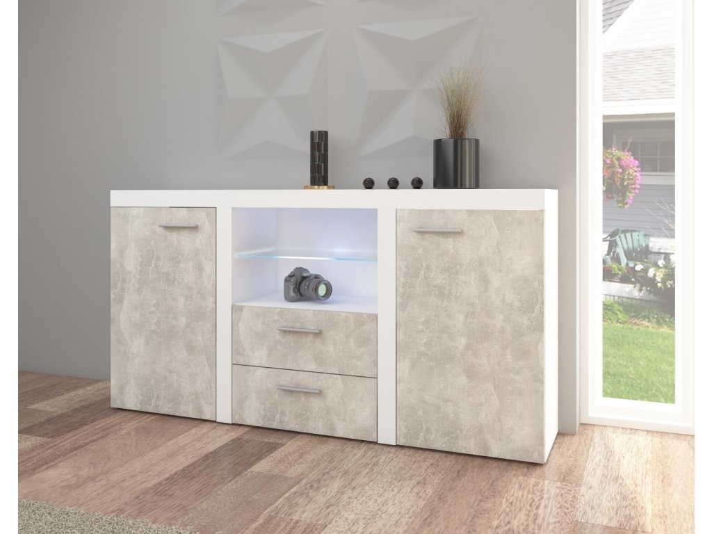 Komoda Rizo 2D2S bílá/beton